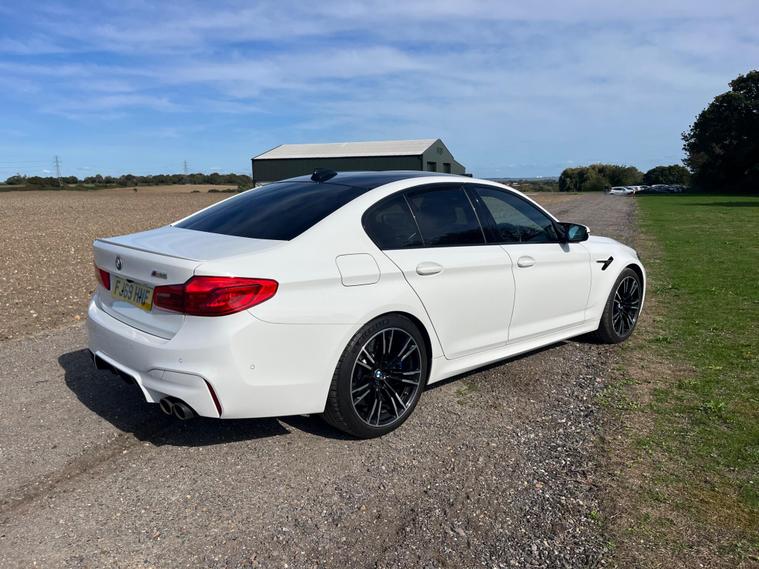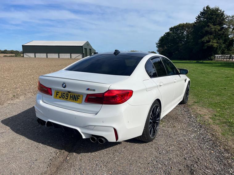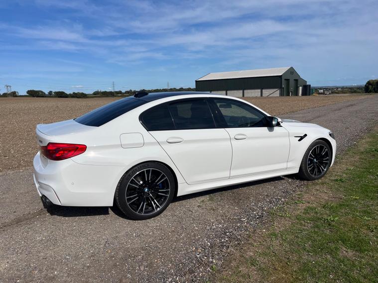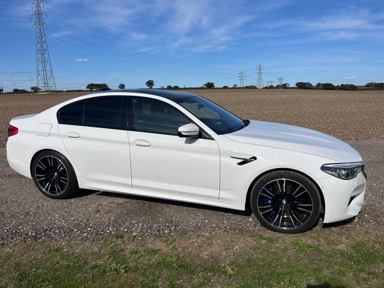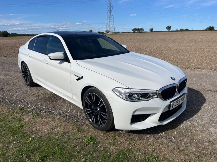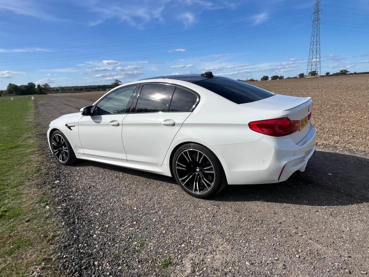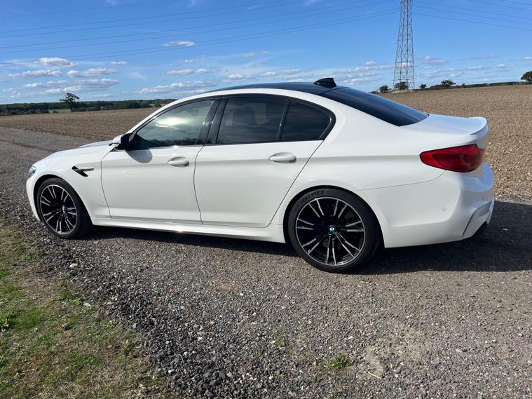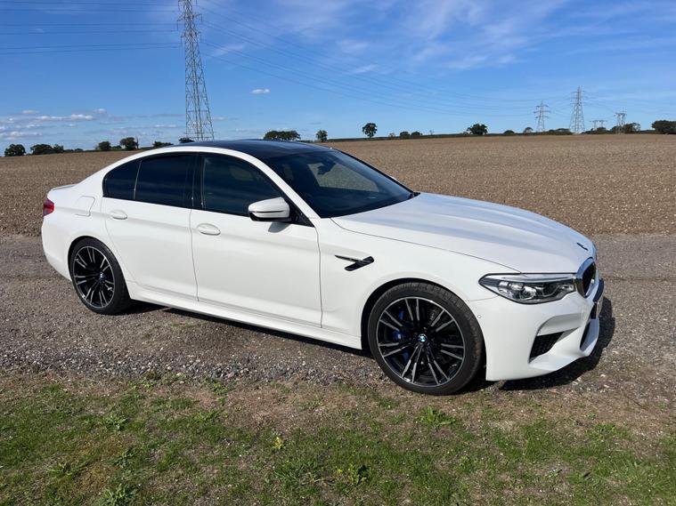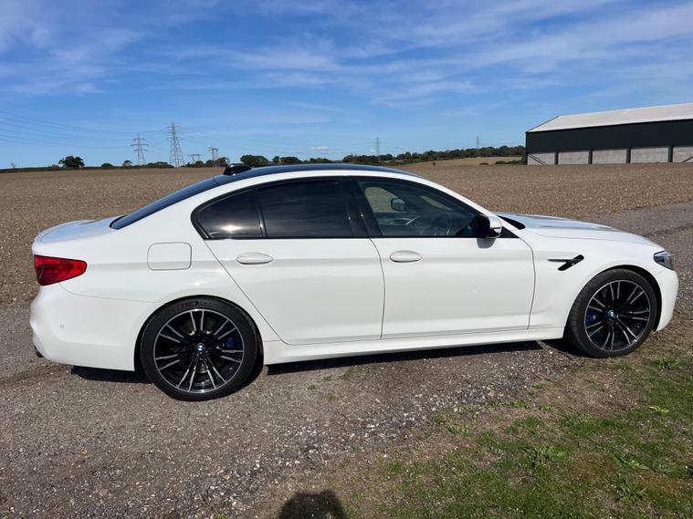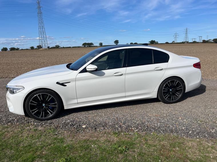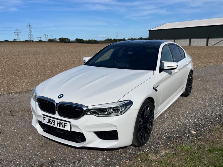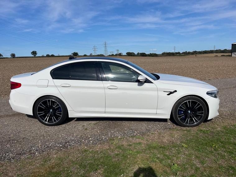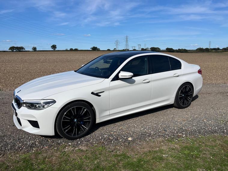 This 2019 BMW M5 V8 presents an exceptional ownership proposition, boasting a full dealership service history and a clear vehicle history check, ensuring complete peace of mind. Powered by a potent 4.4L petrol engine and featuring a sophisticated four wheel drive system, this Euro 6 compliant model delivers exhilarating performance, achieving 0-62mph in a remarkable 3.4 seconds. With only one owner since new and MOT valid until September 2026, this M5 has been meticulously maintained, with its last service performed on 2025-10-08 at 56464 miles. The vehicle comes with a 3 month warranty for added security.Experience a refined drive with a suite of notable features designed for comfort and convenience. The Driving Assistant Plus package, including Blind Spot Assistance and Adaptive Cruise Control, enhances safety and reduces driver fatigue. Stay connected with Apple CarPlay preparation and Bluetooth, while the heated steering wheel and heated front and rear seats ensure comfort in all conditions. Parking is made effortless with front and rear Park Distance Control, supported by front and rear parking sensors. This M5 also offers generous boot space, making it as practical as it is powerful, and its rapid acceleration significantly sets it apart from other vehicles in its class.Please call 01245482565 for further detailsAppointment only.