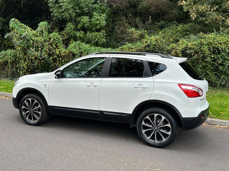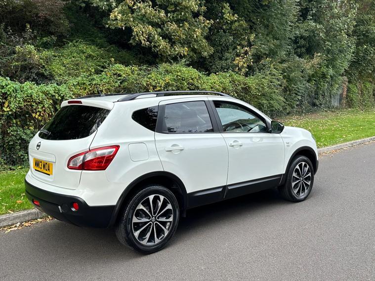 ULEZ ** IMMACULATE INSIDE OUT ** FULLY VALETED ** NEW CLUTCH JUST FITTED ** FULL NISSAN MAIN DEALER SERVICE HISTORY WITH 12 SERVICES FROM NISSAN ** LAST SERVICE 02030183648 ** MOT 29-09-2026( with new clutch, new front discs and pads , new rear discs and pads , new both suspension arms new both track rod ends , receipt provided for all work) , ** SPARE KEY ** SATNAV ** PANORAMIC ROOF ** REVERSE CAMERRA ** FOLDING MIRRORS ** BLUETOOTH** FREE 6 MONTHS PARTS AND LABOUR NATIOWNIDE WARRANTY ** FREE 12 MONTHS AA BREAKDOWN COVER ** This 2013 Nissan Qashqai 360 is a standout choice with its remarkably low mileage of just 56, 000 miles for its age. This popular 1.6 litre petrol model offers a clear vehicle history, providing peace of mind for its next owner. Inside, you'll find a spacious cabin enhanced by a panoramic glass roof with an opening sunroof, perfect for enjoying the sky above. Stay connected and entertained with Bluetooth telephone integration, and enjoy effortless driving thanks to the automatic lighting system and rear parking sensors. Comfort is assured with dual zone climate control, allowing both driver and passenger to set their preferred temperature.The Nissan Qashqai 360 excels in practicality and economy, making it a wise choice. Its impressive fuel economy of 46 miles per gallon means fewer stops at the petrol station, while its low CO2 emissions contribute to a lower environmental impact. Furthermore, this Qashqai sits in a low insurance group, which can help to keep your running costs down compared to similar vehicles. These combined benefits highlight how this particular Qashqai offers excellent value and efficiency..