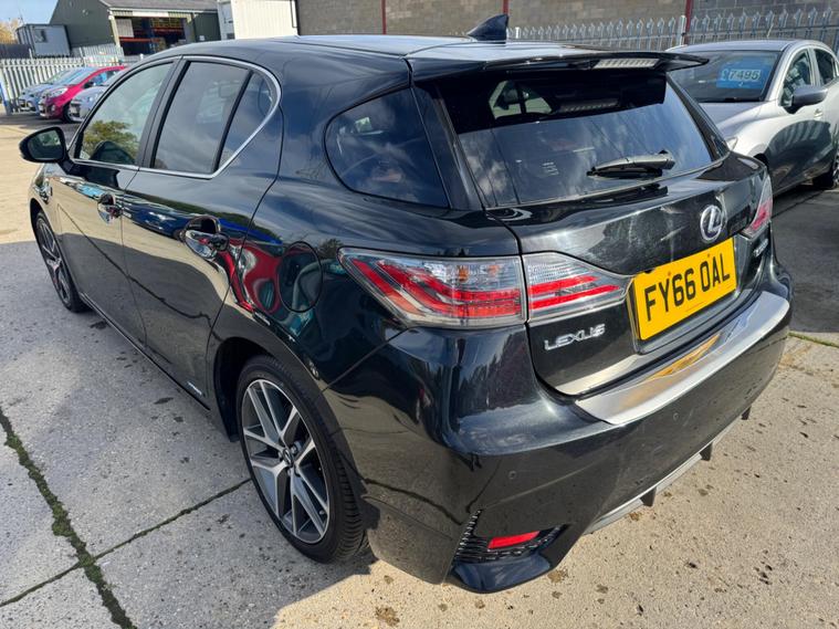 HPI CLEAR. 6 MONTHS WARRANTY. FULL SERVICE HISTORY. MOT. HEATED RED LEATHER SEATS. AIR CONDITIONING. SAT NAV. USB SOCKETS. DAB RADIO. ALLOY WHEELS. BLUETOOTH CONNECTION. CRUISE CONTROL. DAB RADIO. ELECTRIC WINDOWS AND MIRRORS. PARKING CAMERA. AUTO LIGHTS AND WIPERS. MORE DETAILS AT dealer's website 2016 Lexus CT 200h F Sport presents a compelling proposition with its remarkably low mileage of just 62, 000 miles for its age, coupled with a clear vehicle history check. This particular model boasts a sophisticated 1.8L petrol hybrid engine, adhering to the Euro 6 emission standards, making it an efficient choice. The F Sport trim enhances its appeal, offering a refined driving experience.You'll appreciate the convenience of rear and front parking sensors, designed to make manoeuvring easier. The headlights feature LED technology for the main beams, complemented by halogen high beams, ensuring excellent visibility. Connectivity is seamless thanks to Bluetooth audio streaming, allowing you to enjoy your favourite music on the go. Furthermore, the driver's seat includes a memory function, remembering your preferred position for every journey. This Lexus CT also offers generous boot space, a practical advantage for everyday use and longer trips, setting it apart from many other vehicles in its class..