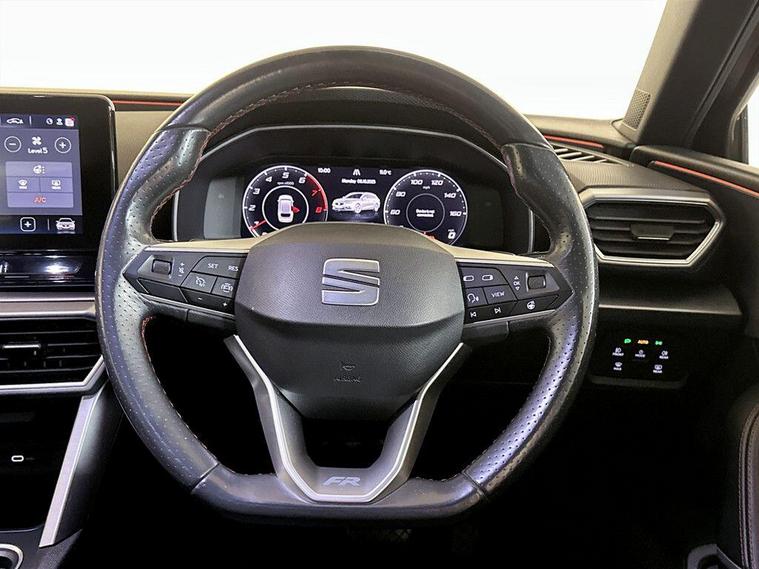 This 2021 SEAT Leon eTSI FR Sport offers exceptional value with only one owner and a remarkably low mileage of 28960 miles for its age. This stylish hatchback is powered by an efficient 1.5L Petrol Hybrid engine, meeting Euro 6 emission standards. The FR Sport trim ensures a premium experience, featuring striking LED headlights with dynamic turn signals and automatic coming home functionality. Inside, you'll appreciate the comfort of a heated, leather flat bottomed, perforated steering wheel and the convenience of three zone climate control, ensuring everyone stays comfortable. The SEAT Leon eTSI FR Sport excels in its class, offering a blend of performance and practicality. Its acceleration from 0-62mph in just 8.7 seconds demonstrates its responsive nature, while the large boot space provides ample room for all your needs. Parking is made effortless with the included Park Assist system, complete with front and rear parking sensors, making manoeuvring in tight spots a breeze. These features collectively highlight how this Leon provides a superior driving and ownership experience compared to other vehicles in its segment.For peace of mind this vehicle has only had 1 registered owner and has completed a multi point AA dealer's website finance is also available.We are open 7 days a week and have more than 1500 cars to choose from.All our Euro 4 Petrol and Euro 6 Diesel vehicles meet the ULEZ standard.Vehicle specification can be found below. From time to time vehicles have manufacturer recalls notified. Please read our recall policy on our website for further information..