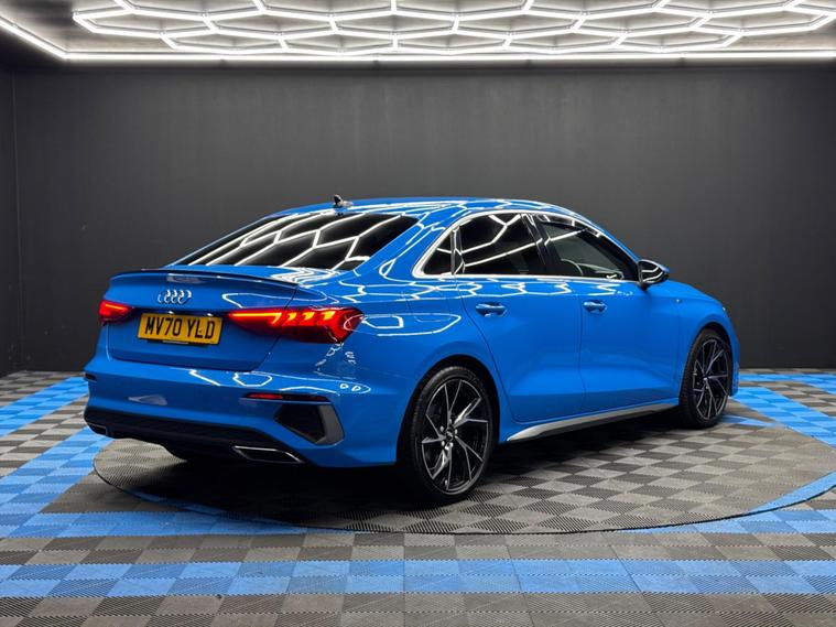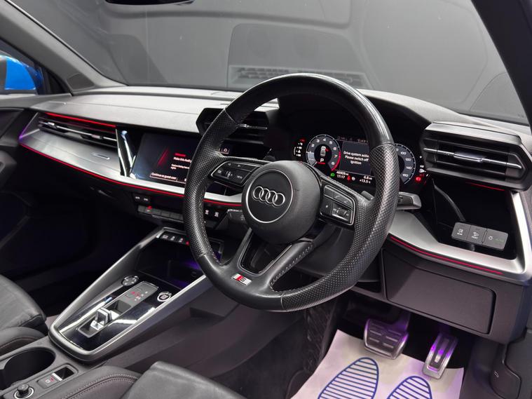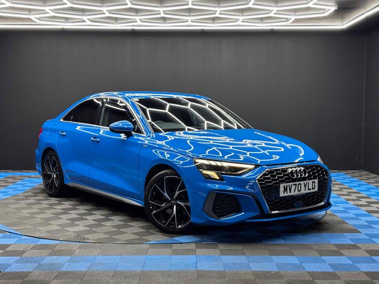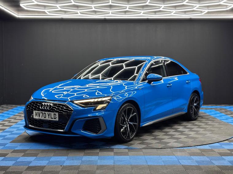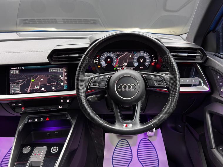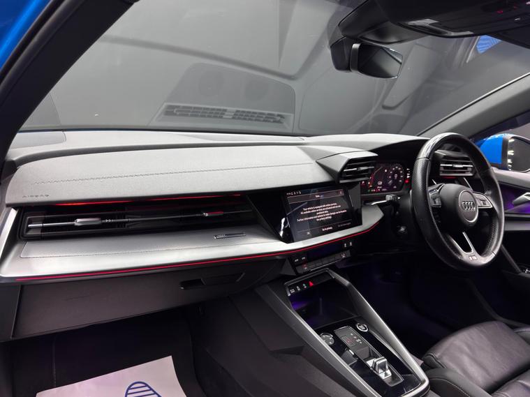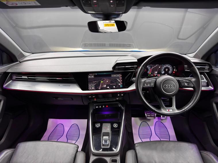 Here at Motor Gurus we are delighted to offer an Audi A3 1.5 TFSI 35 S line S Tronic. This vehicle is in immaculate condition inside and out. This specific vehicle is finished in a GLOSS BLUE and is contrasted by a BLACK LEATHER interior. This vehicle comes included with: FRONT & REAR SENSORS, PRIVACY GLASS, AUTOMATIC HEADLIGHTS, PERFORATED GRIP LEATHER STEERING WHEEL, KEYLESS START, HEATED SIDE MIRRORS, CRUISE CONTROL, TWIN CUPHOLDERS, SAT NAVIGATION, DAB RADIO, BLUETOOTH AUDIO, TELEPHONE CONNECTIVITY, APPLE CARPLAY, DRIVING MODES, AUDI PRE-SENSE, TYRE PRESSURE MONITORING, AMBIENT LIGHTING AND MUCH MORE! Our Audi A3 1.5 TFSI 35 S line S Tronic will also come provided with a 12 MONTH MOT as well as a FRESH OIL SERVICE before it leaves our premises (OTR)..