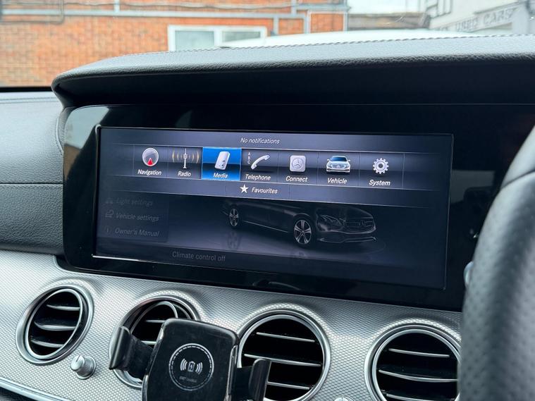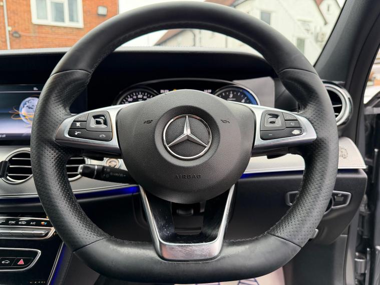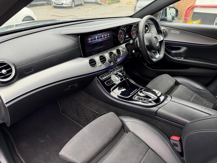 This 2017 Mercedes Benz E Class E220d AMG Line boasts an impressive provenance, having had only two owners. It features a refined 2.0L diesel engine, meeting Euro 6 emission standards, and comes equipped with the stylish AMG Line trim. For convenience and safety, it includes a reversing camera with parking assistance, LED High Performance headlamps with integrated daytime running lights, and THERMATIC automatic climate control for a comfortable cabin environment. The Audio 20 USB system with Bluetooth connectivity ensures you stay connected on the go, while Active Parking Assist with PARKTRONIC, including front and rear parking sensors, makes manoeuvring effortless.This E Class offers exceptional efficiency, achieving a remarkable 66 mpg, and benefits from low CO2 emissions, making it an economical choice. Its acceleration is brisk, reaching 0-62mph in just 7.3 seconds, demonstrating a pleasing blend of performance and economy that sets it apart from many similar vehicles. Furthermore, you will appreciate the generous boot space, perfect for luggage or shopping, adding to the practicality of this well appointed Mercedes Benz..