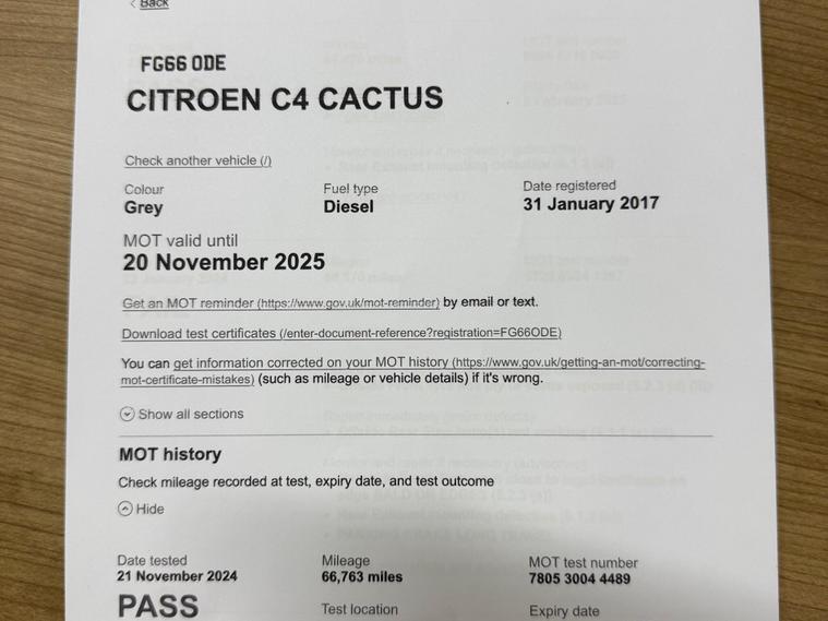 Here at Ezat Car Sales, we are proud to showcase a 2017 Citroen C4 Cactus BlueHDi Feel which presents a remarkable opportunity with its exceptionally low mileage for its age, having covered just 68, 621 miles. It comes with 2 remote central locking keys, benefits from partial service history with its last being completed on 07/10/2025 at 68529 miles, and also comes with a fresh MOT waiting to be put on. For your peace of mind, it comes with a 6 month warranty and a 12 month MOT provided on purchase. Inside, you'll find convenient features such as Bluetooth for media streaming and hands free calls, alongside air conditioning to ensure a comfortable journey, also a spare tyre. This car has been thoroughly checked both mechanically and electrically so you can come view with confidence, knowing that the car is ready to go.The Citroen C4 Cactus BlueHDi Feel stands out with several key advantages. Its impressive fuel economy of 79 mpg means fewer trips to the petrol station, making it an economical choice. Not only economical but also Euro 6, meaning that it is ULEZ compliant. Furthermore, its low CO2 emissions contribute to a more environmentally friendly drive. This model also boasts a low insurance group, which can help to keep your running costs down. Practicality is also a strong point, with generous boot space perfect for shopping trips or luggage.Feel free to give us a call to book a viewing. Deposits are welcomed. This car comes with warranted mileage, full vosa history, comes with all documents, part EXCHANGE welcome, all our cars come fully VALETED, inspected and test drives are welcome, all major credit/debit card and online payments accepted, FINANCE can be arranged, nationwide delivery available. Visit our website for more affordable cars dealer's website