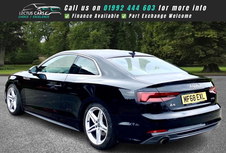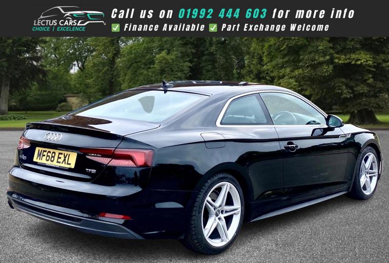 With a full service history and a recent service completed in October 2024 at 59, 615 miles, this 2018 Audi A5 TFSI S line is finished in Black with Black Part Leather Upholstery offers excellent provenance. This Euro 6 compliant model, featuring a 1.4 litre petrol engine, comes with a 6 month warranty for your peace of mind. Its MOT is valid until September 2026, and it has had only two owners. Notable features include Keyless Go for effortless entry and starting, Parking System Plus with front and rear sensors to aid manoeuvring, and the Audi Smartphone Interface for seamless integration of Android Auto and Apple CarPlay. You'll also appreciate the Deluxe 3-Zone Electronic Climate Control for personalised comfort and the Light and Rain Sensor which automatically activates the headlights.This Audi A5 TFSI S line stands out with its impressive fuel economy, achieving a highlight of 52 miles per gallon, indicating it is more economical than many similar vehicles. Its low CO2 emissions also contribute to its efficiency and environmental consideration. Furthermore, the generous boot space provides ample room for luggage or shopping, making it a practical choice for everyday use and longer journeys.0% Deposit when financing through us.DELIVERY AVAILABLE. The Car Comes With A 6 Month Premium Nationwide Parts And Labour Warranty Finance Available From 10.9 % Apr All Inspections Welcome AA/RAC Px Welcome Viewing By Appointment Only Please Call John On 01992692105 Or 01992692105.