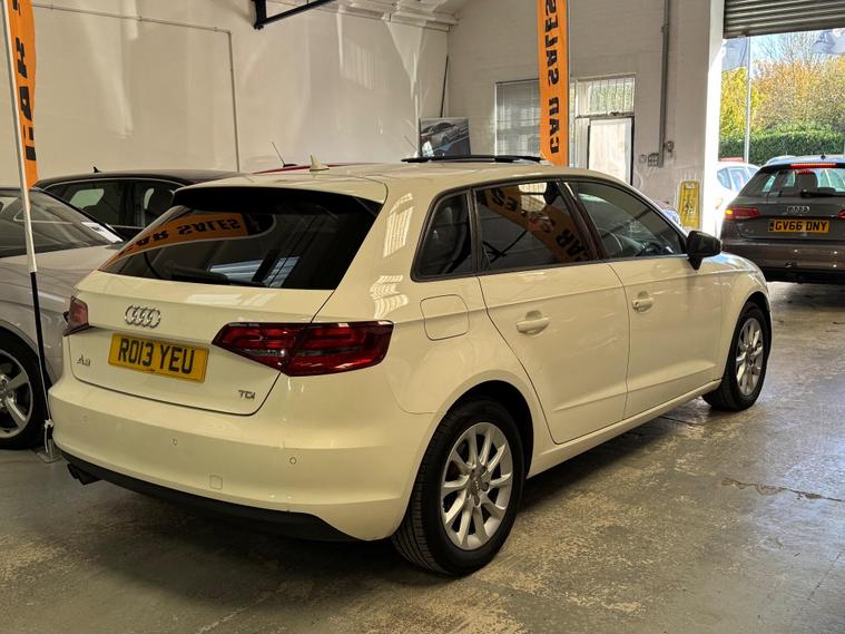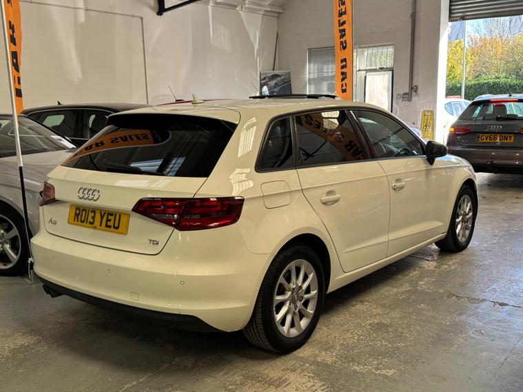 ***READY TO DRIVE AWAY***This Audi A3 TDI SE from 2013 presents a remarkable ownership history, having been cherished by just one owner from new.  With a full service history culminating in a recent service on 2025 10 15 and a clear vehicle history check, this 2.0 litre diesel model offers peace of mind, further supported by an MOT valid until July 2026 and a 3 month warranty.  The SE trim includes a 4 spoke leather steering wheel with shift paddles, a Bluetooth interface for mobile telephone preparation, and air conditioning, all contributing to a comfortable and connected driving experience.This particular A3 stands out with its low mileage of 95, 000 miles for its age, a testament to its careful use. Its acceleration from 0 to 62mph in just 8.4 seconds demonstrates a responsive performance that surpasses many comparable vehicles. Furthermore, the generous boot space ensures practicality for everyday needs and longer journeys, making this Audi A3 a well rounded and appealing choice..