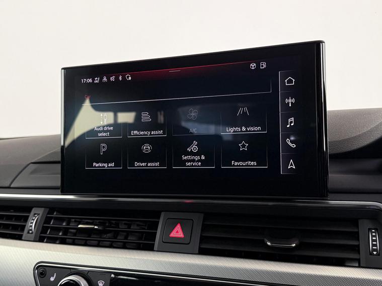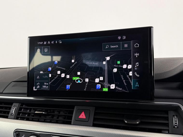 Our Audi A4 is finished in Black. With a great specification, our A4 includes features such as 17 Inch Alloy Wheels, Front and Rear Electric Windows, 360 Camera, Air Conditioning, Apple Carplay, Bluetooth, DAB Radio, Multi-Function Steering Wheel, Parking Sensors, Satellite Navigation, Upgraded Sound System - Bang & Olufsen, USB, Black Cloth Trim, Cup Holders, Folding Rear Seats, Heated Seats, Rear Central Armrest, Start/Stop Button, ISOFIX, LED Daytime Running Lights, Remote Central Locking..