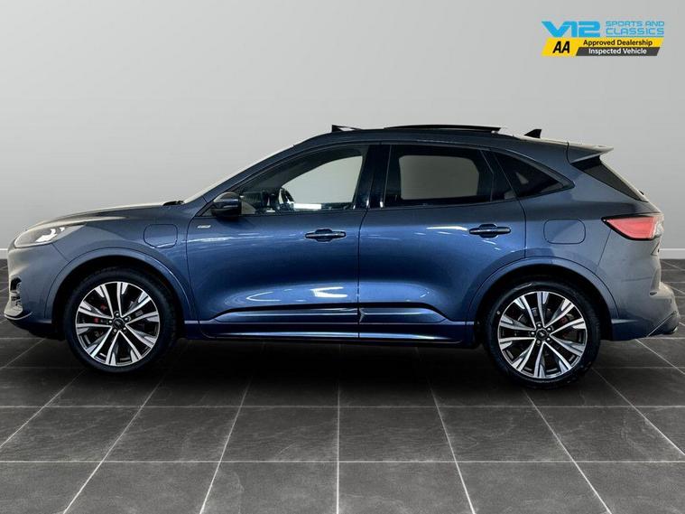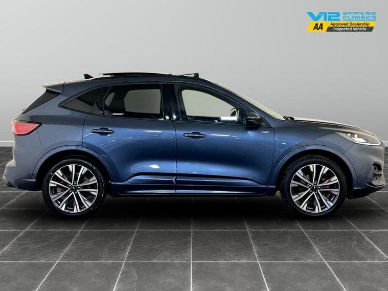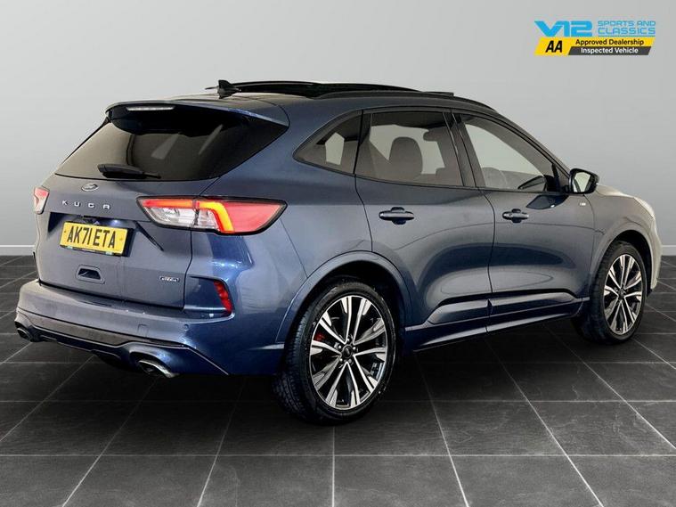 This 2021 Ford Kuga ST-Line X Edition offers an exceptional blend of efficiency and style, featuring a 2.5L Petrol Plug-in Hybrid engine that meets Euro 6 emission standards. This model boasts a sophisticated Pearl Grey 20 inch alloy wheel design, a power opening panoramic roof for an airy cabin feel, and a convenient luggage compartment mat. Inside, occupants will appreciate the dual zone electronic automatic temperature control for personalised comfort and the added luxury of heated rear seats, making every journey enjoyable for all. The ST-Line X Edition trim level signifies a higher specification, indicating this Kuga provides a superior experience compared to other models. Its plug-in hybrid technology offers an economical driving solution, while the premium features like the panoramic roof and heated rear seats enhance passenger comfort and enjoyment. Furthermore, this vehicle falls into a low insurance group, presenting a cost effective ownership proposition for drivers.For peace of mind this vehicle has completed a multi point AA inspection. Competitive finance is also available.We are open 7 days a week and have more than 1500 cars to choose from.All our Euro 4 Petrol and Euro 6 Diesel vehicles meet the ULEZ standard.Vehicle specification can be found below. From time to time vehicles have manufacturer recalls notified. Please read our recall policy on our website for further information..