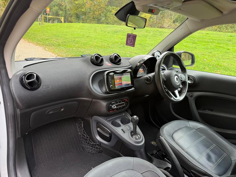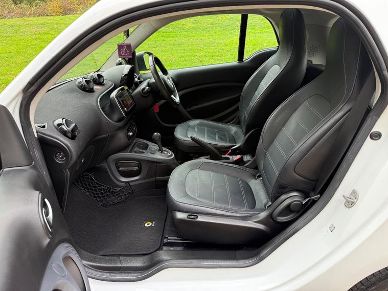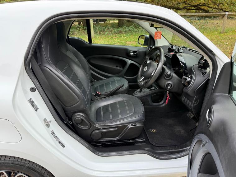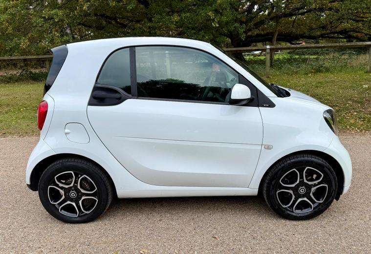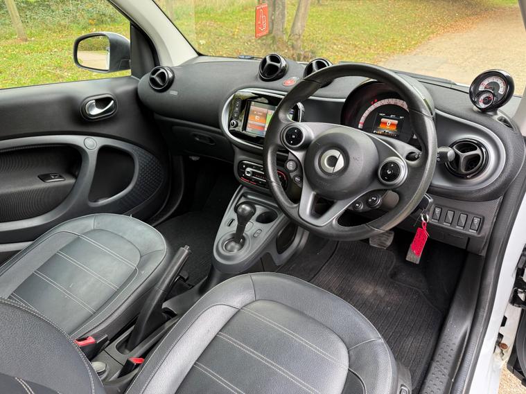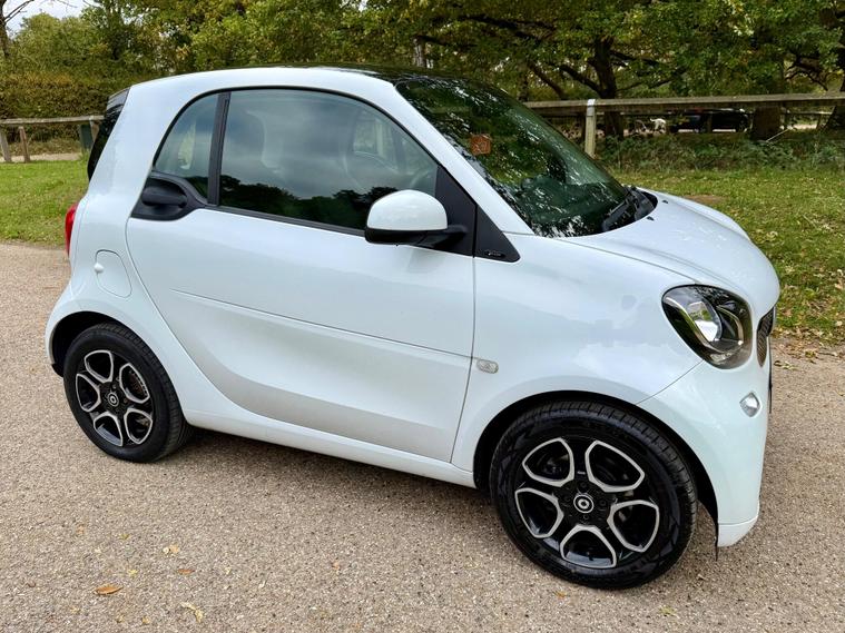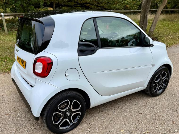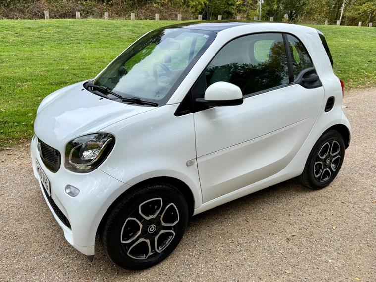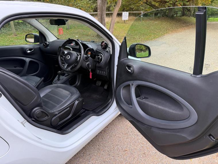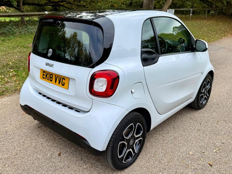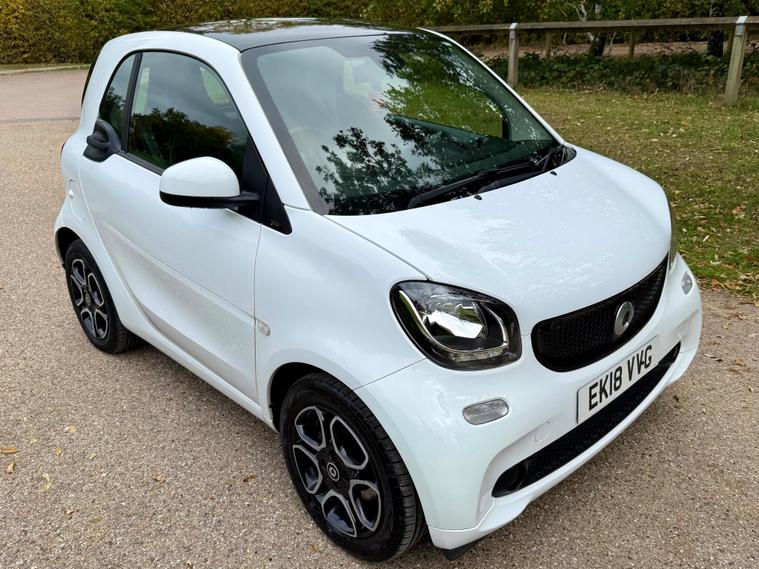 This 2018 Smart Fortwo Prime (Premium) boasts a clear vehicle history check, offering you peace of mind. This compact city car is powered by an efficient 1.0 litre petrol engine, meeting Euro 6 emissions standards. It features a striking White Solid Paint Tridion Safety Cell and comes equipped with the Premium Equipment Line, which includes Bluetooth connectivity and rear parking sensors for added convenience. Enjoy the open air with the fixed panoramic roof, complete with sun protection, and stay comfortable year round thanks to the Cool and Audio Package, offering automatic climate control and heated seats for both the driver and front passenger.The Smart Fortwo Prime is designed for efficient urban driving, achieving an impressive fuel economy of 48 miles per gallon. Its low CO2 emissions further highlight its suitability for environmentally conscious drivers. These features collectively demonstrate how this Smart Fortwo offers a superior driving experience compared to other vehicles in its class, combining practicality, comfort, and modern technology in a stylish package..