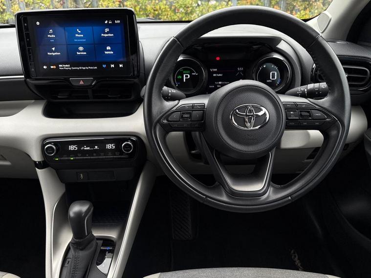 This 2022 Toyota Yaris VVT-h Excel is a truly exceptional example, boasting a full service history and having been meticulously maintained by its single owner. As a Toyota manufacturer approved vehicle, it comes with the reassurance of a 12 month warranty, and its last service was completed on 2024-09-11 at 15188 miles. This Euro 6 compliant 1.5L petrol hybrid is presented in the desirable Excel trim, offering a refined driving experience.The Yaris Excel is equipped with a host of impressive features designed to enhance your journey. Enjoy seamless connectivity with smartphone integration, including Apple CarPlay and Android Auto, alongside Bluetooth connectivity for hands free calls and music streaming. For added convenience and safety, it includes a reversing camera with parking assistance and Toyota Safety Sense 2, which features adaptive cruise control. These highlights demonstrate how this Yaris offers superior efficiency, with an impressive 66 mpg fuel economy and low CO2 emissions, setting it apart from other vehicles in its class..