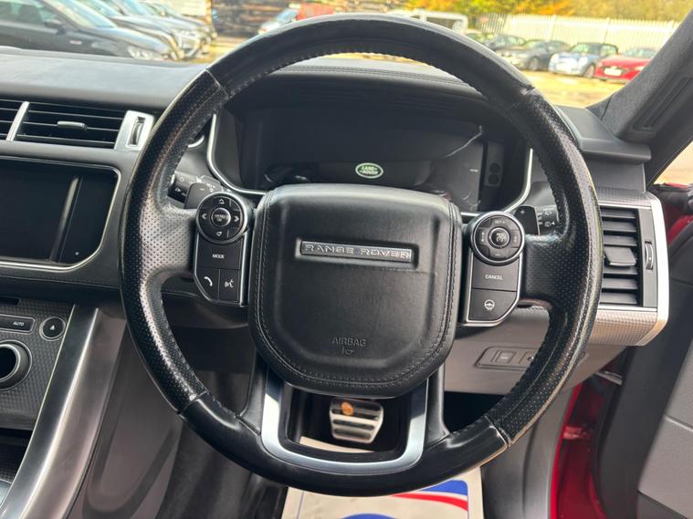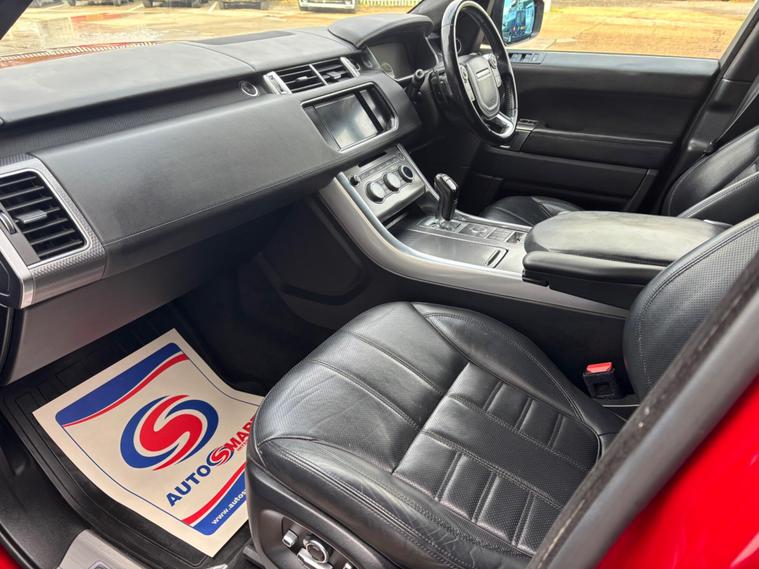 Just arrived is this lovely example of a Range Rover Sport Autobiography Dynamic in Firenze Red with contrasting black leather. New major service just done and a new, advisory free MOT. All the alloys have been refurbished and are unmarked. Huge specification including digital TV, 4-Zone climate control, heated front & rear seats panoramic roof plus much more. 6 months warranty included with upgrade option. Supplied with 2 remote keys and bookrack. FINANCE AVAILABLE & PART EXCHANGE WELCOMED.