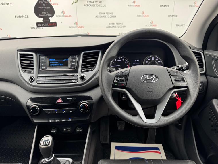 FINANCE & PCP AVAILABLE, COMPLEMENTARY WARRANTY INCLUDED, GOOD CONDITION, WE TAKE PART EXCHANGE! Hyundai TUCSON 1.6 GDi Blue Drive S Euro 6 (s/s) 5dr Manual 6 Speed. HPI Clear, Service History, 12 Months MOT Included With No Advisories, 2 Owners, EURO6 ULEZ Compliant, Insurance Group 15, Start/Stop Function, Hill Assist Control, Downhill Brake Control, Power Assisted Steering, Electronic Stability Programme, Trailer Stability Assist, Vehicle Stability Management, Electronic Brake-Force Distribution, Anti-Lock Brake System, Brake Assist System, Tyre Pressure Monitoring System with Individual Tyre Display, Headlights - Automatic, Projection Headlights, Positioning Lights LED, Daytime Running Lights - LED, Electric Windows, Electric Mirrors, Manual Climate Control, Air Conditioning, Front And Rear Screen Demister, Drivers Information Display, Bluetooth, Radio, AUX, USB, Telephone Connection, Multifunctional Steering Wheel, Cloth Design Seats Black/Grey With Blue Design Line, TUCSON Design Door Sills, Exterior Badging, 16inch Alloy Wheels.ALL VEHICLES ARE FULLY INSPECTED PRIOR TO SALE. The bodywork is in excellent condition and the car drives superbly. We welcome you to view and test drive our showroom condition vehicles. Wish to make this purchase hassle free with ease? Feel free to enquire about our competitive Financial packages. We can assist you in securing finance for your New car with ease- regardless of your credit status/history. All of our cars are regularly price checked to be amongst the most competitive on the market! We include a COMPLEMENTARY WARRANTY on all our vehicles. Ace Car Sales Heywood is a well established Family run business with 30+ years of experience in the Motor trade industry! We pride ourselves on offering a personalised service to suit your needs. Visit our website for more information on our vehicles - dealer's website 'Buy With Confidence At Ace Car Sales' , Full service history, Excellent bodywork, Interior - Excellent Condition, Tyre condition Excellent. Be our next happy customer today! dealer's website