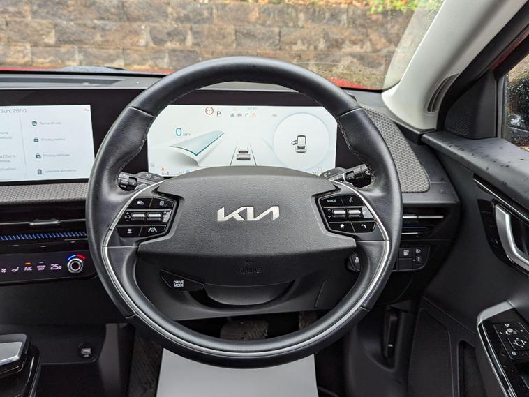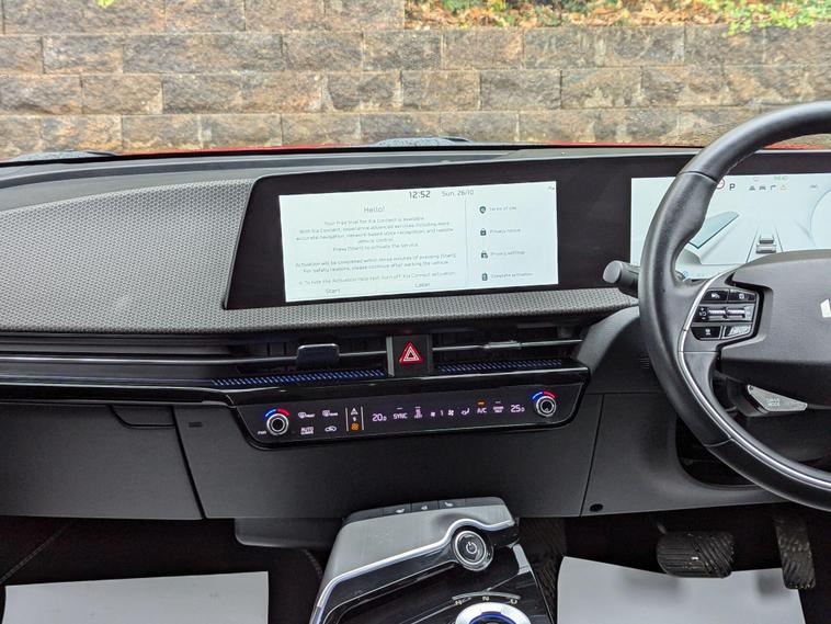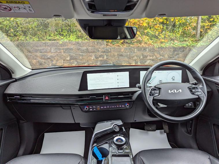 This 2021 Kia EV6 Air is a superb example, having had only one owner from new and boasting a clear vehicle history check. As an electric vehicle, it offers a substantial battery total capacity of 77 kWh, providing a maximum range of 328 miles when new. This model comes equipped with a heated steering wheel for added comfort, Bluetooth with voice recognition for seamless connectivity, and rear parking sensors paired with a reversing camera system featuring dynamic guidelines to assist with manoeuvring. For effortless journeys, it includes Navigation Smart Cruise Control and a speed limiter.The Kia EV6 Air stands out with its impressive performance, achieving 0-62mph in just 7.3 seconds, demonstrating its dynamic acceleration capabilities. Its generous boot space offers ample practicality for everyday needs and longer trips. When it comes to charging, you can achieve a full charge at home using a 7kW charger in approximately 12 hours and 30 minutes, while the fastest public charging can take the battery from empty to 80% in as little as 20 minutes, highlighting its efficiency and convenience compared to other vehicles..