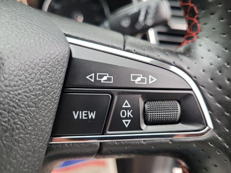 - Steering Wheel - Flat-Bottomed Perforated Leather with Red Stitching and FR Logo