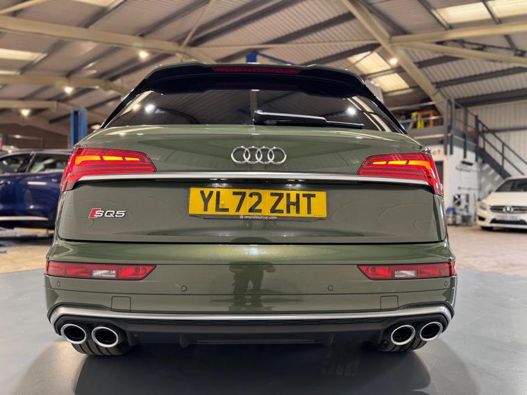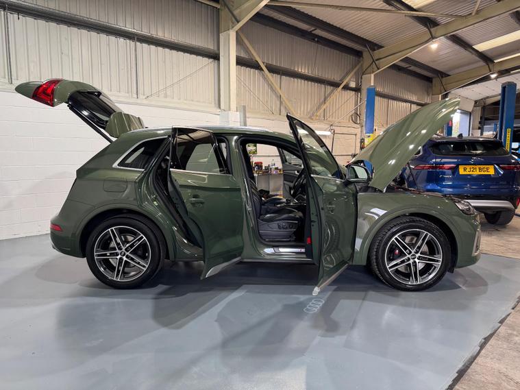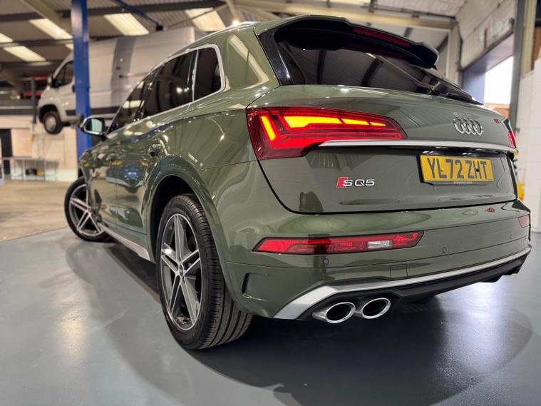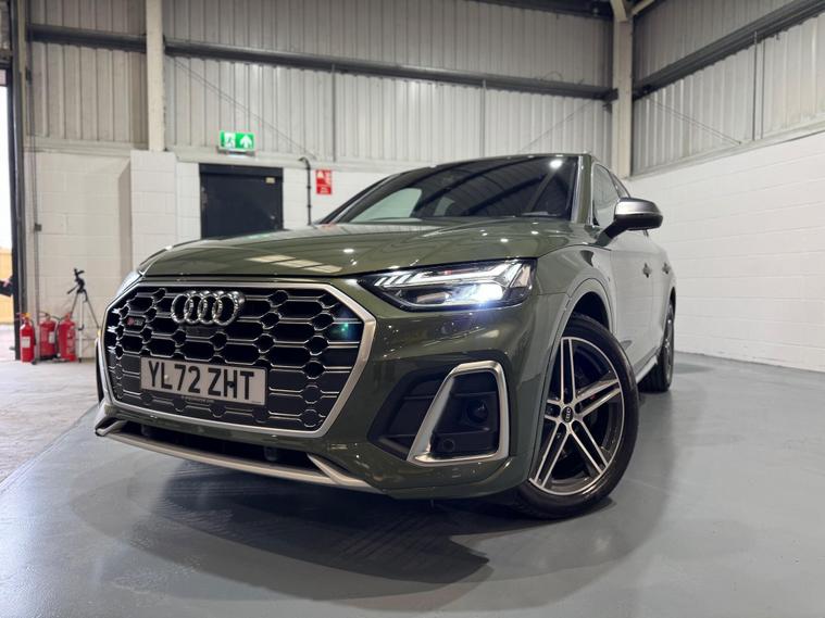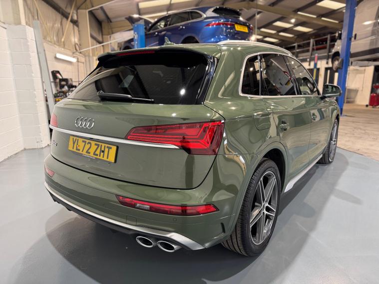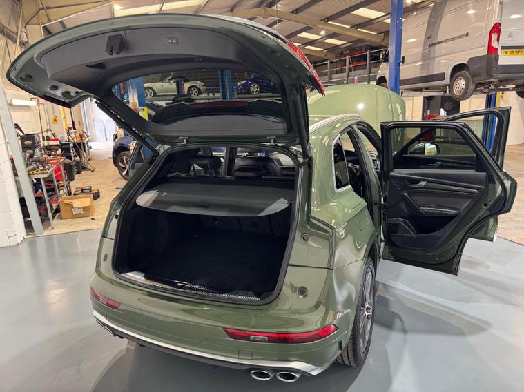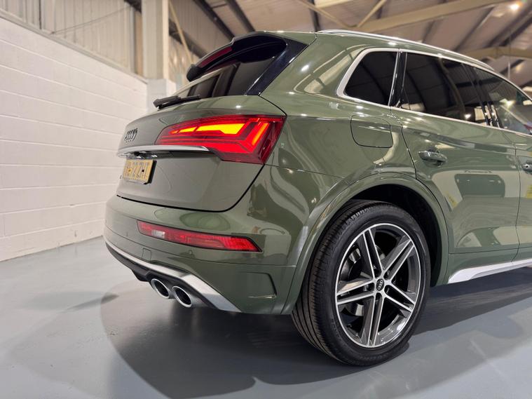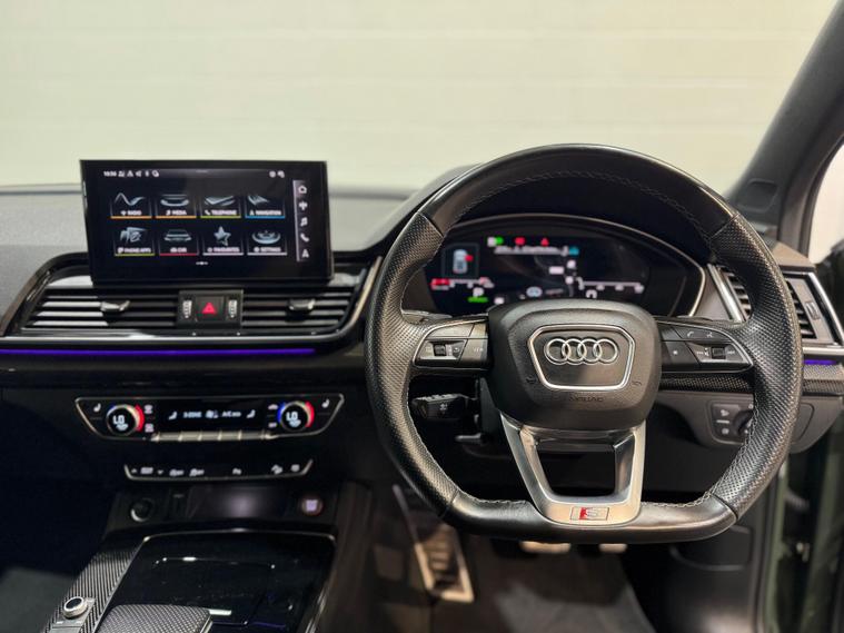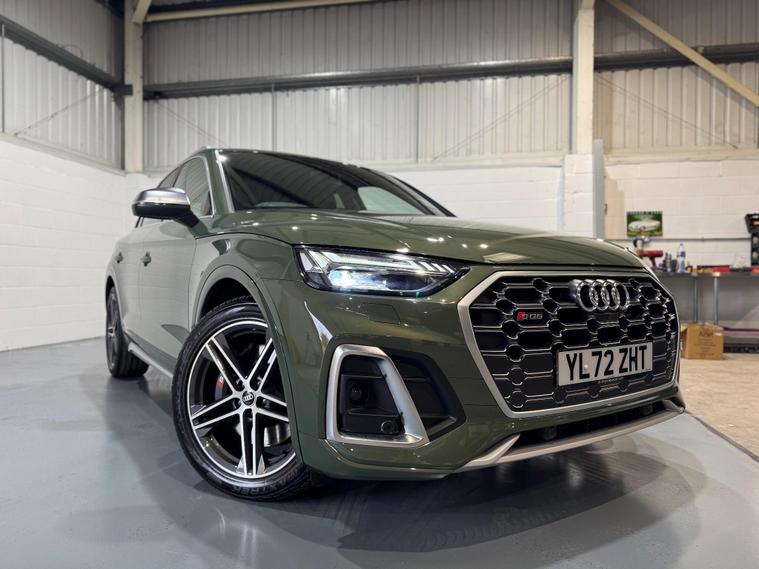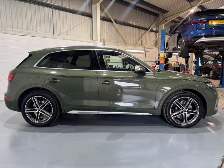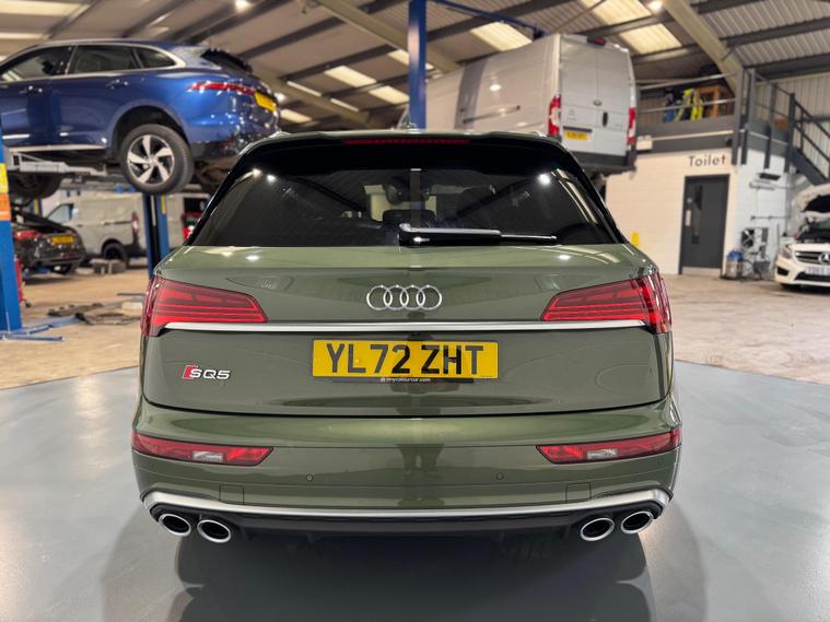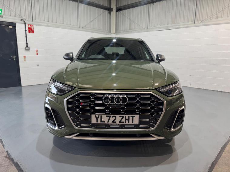 Introducing the Audi SQ5 3.0 TDI V6 Tiptronic quattro Euro 6, finished in the striking District Green Metallic, a colour that beautifully complements the SQ5’s bold, muscular design. This premium performance SUV perfectly combines exhilarating power with everyday luxury, offering an exceptional driving experience supported by Audi’s renowned quattro all-wheel-drive system.Step inside and you’re greeted by an exquisitely crafted interior featuring black quilted leather sports seats, offering both heating and massage functionality for ultimate comfort on every journey. The seats are fully electric with lumbar support, allowing for precise adjustment and effortless comfort. The cabin showcases Audi’s attention to detail, with a clean, driver-focused layout complemented by ambient lighting and premium materials throughout.The Bang & Olufsen sound system delivers a truly immersive listening experience, filling the cabin with crystal-clear sound. Technology continues with a digital dashboard and multifunctional steering wheel, placing all key controls and driving data conveniently at your fingertips. The Apple CarPlay and Android Auto integration ensures seamless smartphone connectivity, while the intuitive infotainment system provides access to navigation, entertainment, and vehicle settings with ease.Parking and manoeuvring are made effortless thanks to the 360-degree camera system, offering a comprehensive view around the vehicle, supported by an electric powered tailgate for added convenience. Subtle yet striking door puddle lights enhance the car’s premium feel, projecting a distinctive welcome each time you unlock the vehicle.On the exterior, the SQ5 stands confidently on stunning 20-inch alloy wheels, perfectly complementing its dynamic stance and sporty silhouette. Under the bonnet, the 3.0-litre V6 TDI engine delivers impressive performance and refinement, paired with Audi’s Tiptronic automatic gearbox for smooth and responsive power delivery in any condition.The Audi SQ5 offers the perfect blend of performance, practicality, and luxury — a high-perfo.