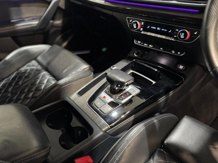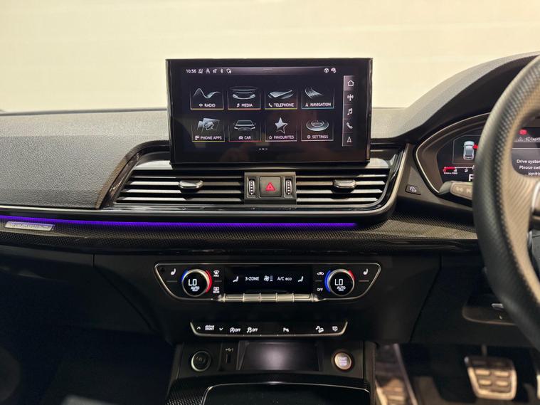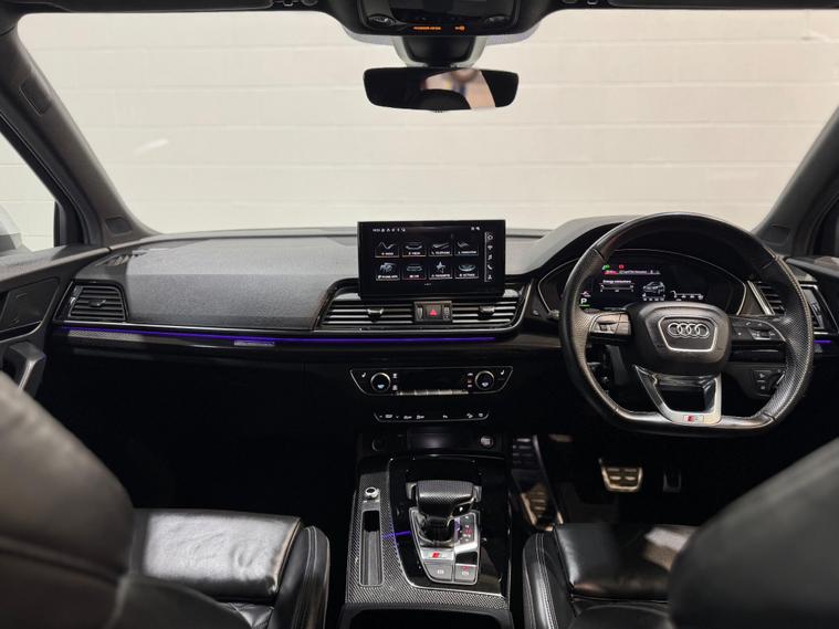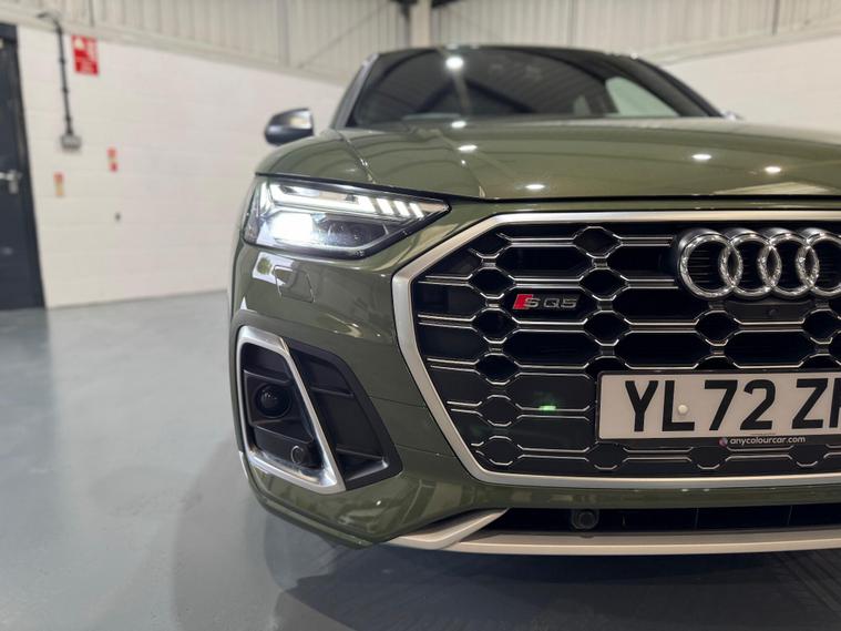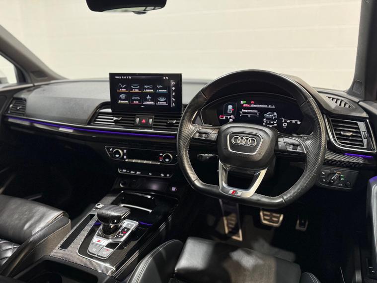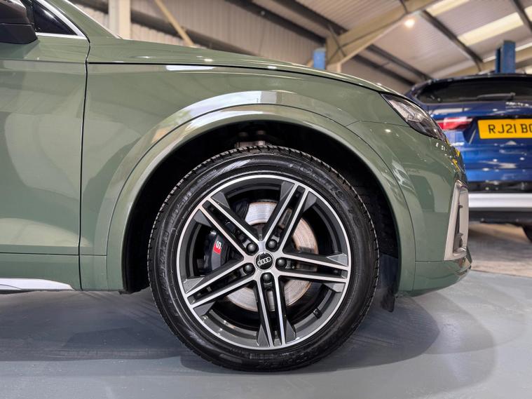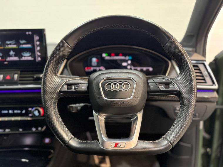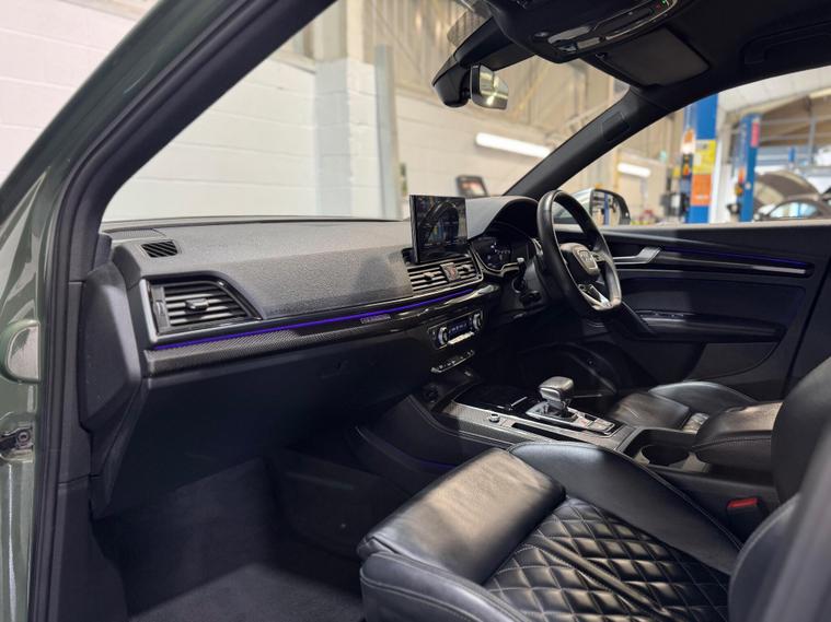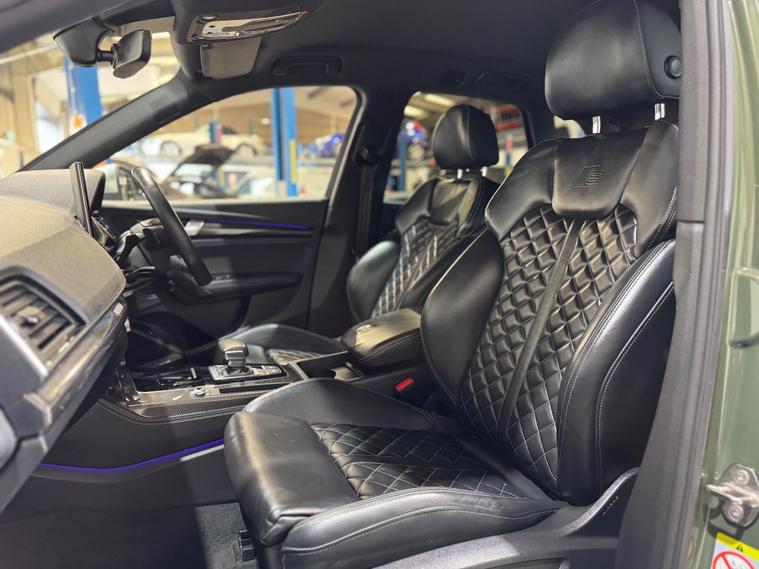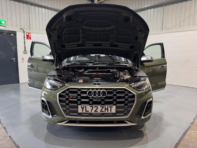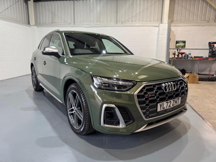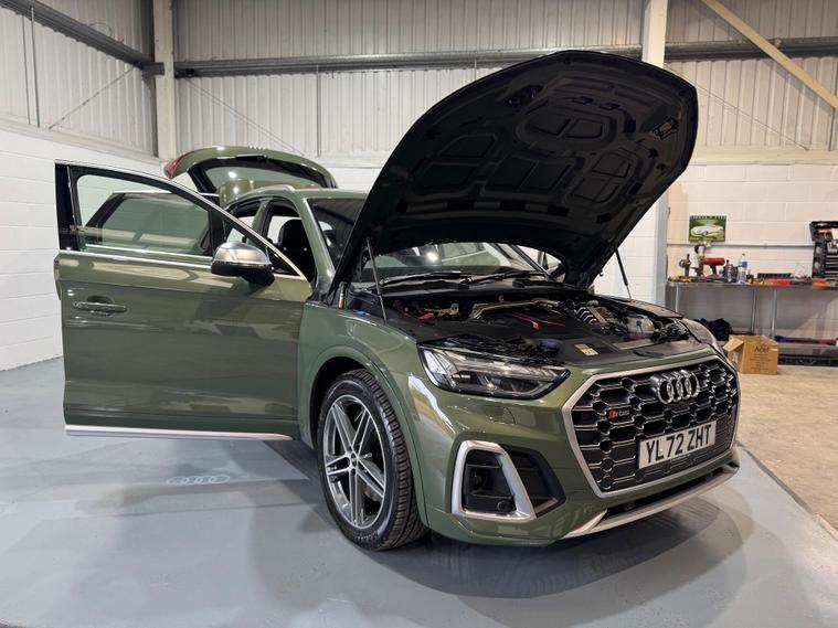 Introducing the Audi SQ5 3.0 TDI V6 Tiptronic quattro Euro 6, finished in the striking District Green Metallic, a colour that beautifully complements the SQ5’s bold, muscular design. This premium performance SUV perfectly combines exhilarating power with everyday luxury, offering an exceptional driving experience supported by Audi’s renowned quattro all-wheel-drive system.Step inside and you’re greeted by an exquisitely crafted interior featuring black quilted leather sports seats, offering both heating and massage functionality for ultimate comfort on every journey. The seats are fully electric with lumbar support, allowing for precise adjustment and effortless comfort. The cabin showcases Audi’s attention to detail, with a clean, driver-focused layout complemented by ambient lighting and premium materials throughout.The Bang & Olufsen sound system delivers a truly immersive listening experience, filling the cabin with crystal-clear sound. Technology continues with a digital dashboard and multifunctional steering wheel, placing all key controls and driving data conveniently at your fingertips. The Apple CarPlay and Android Auto integration ensures seamless smartphone connectivity, while the intuitive infotainment system provides access to navigation, entertainment, and vehicle settings with ease.Parking and manoeuvring are made effortless thanks to the 360-degree camera system, offering a comprehensive view around the vehicle, supported by an electric powered tailgate for added convenience. Subtle yet striking door puddle lights enhance the car’s premium feel, projecting a distinctive welcome each time you unlock the vehicle.On the exterior, the SQ5 stands confidently on stunning 20-inch alloy wheels, perfectly complementing its dynamic stance and sporty silhouette. Under the bonnet, the 3.0-litre V6 TDI engine delivers impressive performance and refinement, paired with Audi’s Tiptronic automatic gearbox for smooth and responsive power delivery in any condition.The Audi SQ5 offers the perfect blend of performance, practicality, and luxury — a high-perfo.