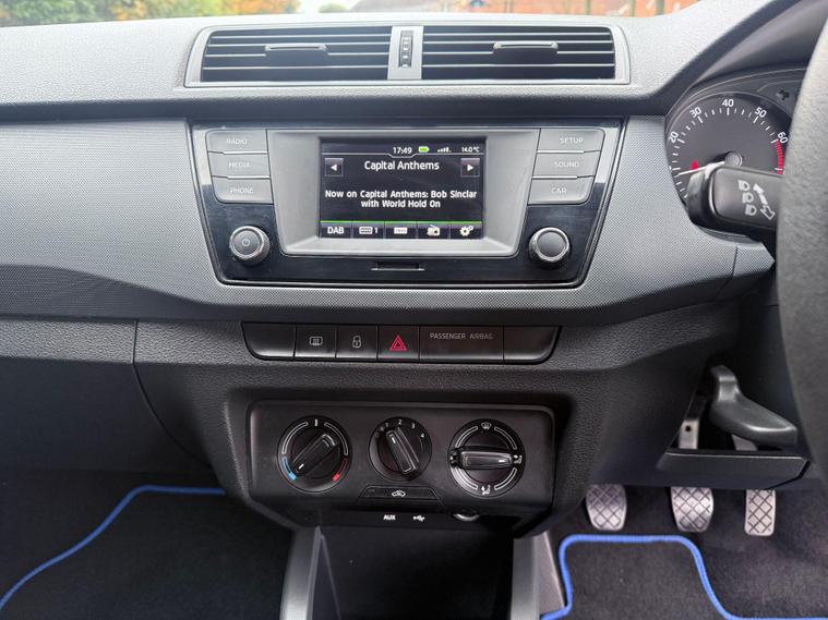 An excellent example of a Skoda Fabia finished in pacific Blue paint, Powered by the non turbo 1.0 litre petrol engine with a GROUP 2 INSURANCE Rating and £20 annual road tax this would make for a perfect first car for a new driver thanks to its low running costs. Having only covered 61, 000 miles with 2 owners condition is excellent all round this car drives great, equipment includes remote central locking, daytime running lights, Bluetooth hands free & music streaming connectivity, usb port, DAB radio, electric front windows, mud flaps, ice scraper in fuel door, storage boxes in front seats, electric mirrors. 2 keys and service history are present. We have just carried out a full service and CAMBELT kit replacement to ensure the new owner will have no upcoming expenses, for added peace of mind this fabia will leave us with a full 12 months MOT..