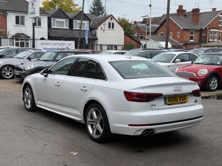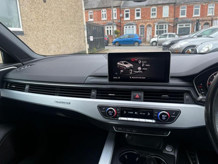 Boasting exceptionally low mileage for its age, this 2016 Audi A4 TDI S line presents a superb opportunity. This four wheel drive model is equipped with a 2.0 litre diesel engine and meets Euro 6 emission standards. Its S line trim enhances the already sophisticated design, while notable features include LED headlights with dynamic rear indicators, rear parking sensors, and automatic headlights with a light sensor. Stay connected and comfortable with the Bluetooth interface for mobile telephone preparation and deluxe 3 zone climate control.This Audi A4 stands out with its impressive fuel economy, achieving a remarkable 63 miles per gallon, which is significantly better than many similar vehicles. Its performance is equally compelling, with an acceleration of 0 to 62 miles per hour in just 7.2 seconds, demonstrating a strong balance of power and efficiency. Furthermore, this model falls into a low insurance group, making it an economical choice for everyday driving..
