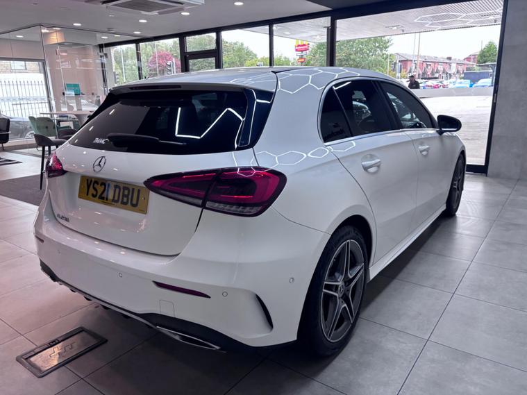 This 2021 Mercedes Benz A Class A250 AMG Line (Executive) has had only one owner from new, showcasing excellent provenance. It features a powerful 2.0 litre petrol engine, meeting Euro 6 emissions standards, and comes in the sporty AMG Line trim. For convenience and safety, it includes a 180 degree reversing camera with parking assistance and guidelines, alongside automatic headlamp activation. Inside, you can enjoy the Mercedes Benz Sound System with 100W output and seamless smartphone integration through Android Auto and Apple CarPlay, plus convenient wireless phone charging.Experience impressive performance with this A Class, capable of accelerating from 0 to 62mph in just 6.2 seconds, demonstrating its dynamic capabilities. This acceleration figure highlights its superior performance compared to many other vehicles in its class. Furthermore, the generous boot space ensures practicality for everyday use and longer journeys, making this Mercedes Benz A Class a well rounded and desirable choice..
