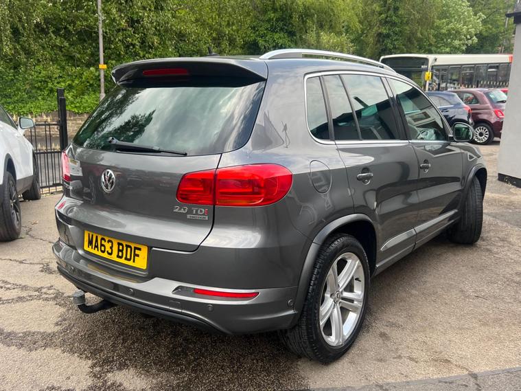 With only 86000 miles on the clock, this 2013 Volkswagen Tiguan is a great option. As a TDI R-Line variant with the R-Line trim, it combines practicality with sporty styling. The 2.0L diesel engine is coupled with a four-wheel-drive system, ensuring confident handling in various conditions. Parking is made easier with front and rear parking sensors, including parking assistance. The automatic driving lights activate via a dusk sensor, and the park assist feature further simplifies parking manoeuvres. Enjoy a comfortable cabin environment with the 2-zone electronic climate control, featuring automatic air recirculation.The Tiguan accelerates from 0-62mph in 8.9 seconds, which means it's quicker off the mark than similar vehicles of its type. With a towing capacity of 2200 kg, this Tiguan is well-equipped for various tasks, making it a versatile choice for those needing to tow trailers or caravans..