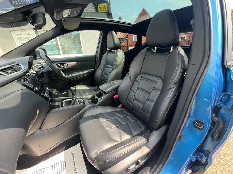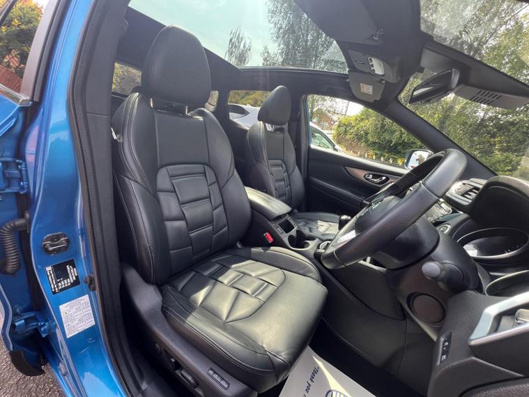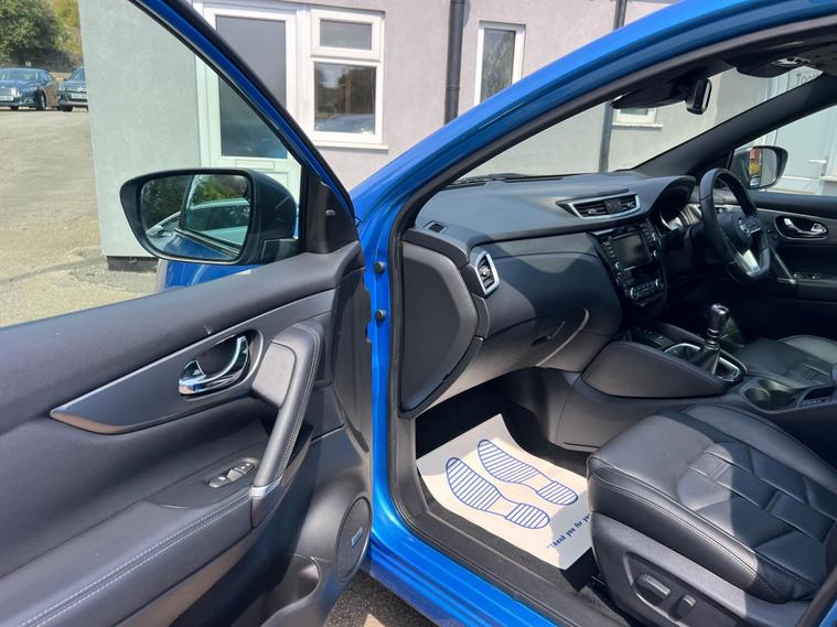 This 2018 Nissan Qashqai dCi Tekna+ offers a blend of style and economy. As a Tekna+ trim, this Qashqai comes equipped with a 1.5L diesel engine and meets Euro 6 emission standards.The vehicle includes an Intelligent Around View Monitor, complete with parking assistance and a 360-degree camera, making parking and maneuvering simple. The LED pack, which includes LED headlights, enhances visibility and gives a modern look. Convenience is further improved with the intelligent key, which enables keyless entry, and the intelligent auto headlight system, which includes automatic headlights. The Bose eight-speaker premium audio system provides an immersive sound experience.This particular model stands out with its fuel efficiency, achieving around 51 mpg, meaning fewer trips to the petrol station. It also falls into a low insurance group, potentially saving you money on your premiums. Furthermore, its low CO2 emissions mean it is kinder to the environment compared to similar vehicles..