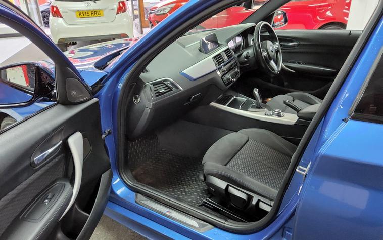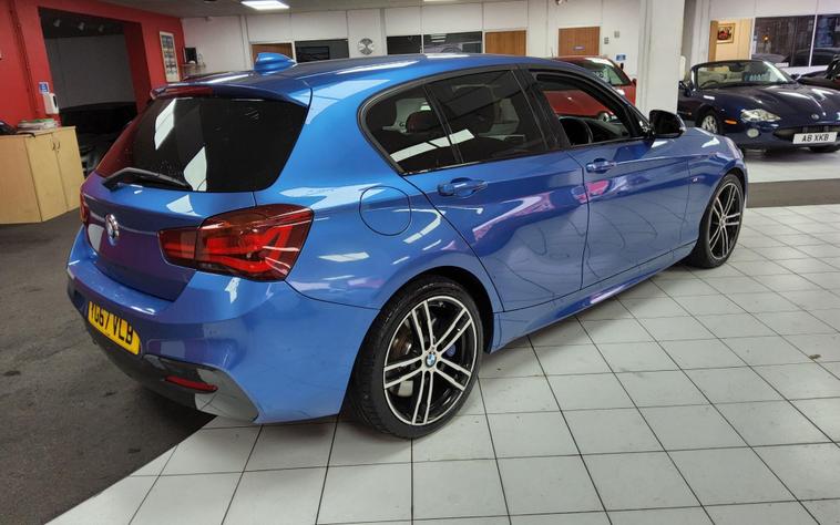 What a great looking car this 118i M Sport Automatic, Shadow Edition is. Finished in the highly desirable Estoril Blue metallic with Anthracite Alcantara & Hex Cloth upholstery. The car also boasts a nice spec. too which includes, SatNav, Bluetooth with music streaming, DAB radio, Air conditioning, Rear parking sensors, Cruise Control, Electric windows x 4, Rear Isofix x 2, and much more.The car will leave here with an October 2026 MOT with no advisories, and it will be valeted. The car has service history and it was last serviced May 2025. We can arrange finance and we welcome a part exchange. We can email a walk around video to you and we can also arrange for UK delivery to your door, please call for more information. Viewing in our heated showroom and test drives are available 7 days a week - please call to arrange, prior to travelling. Extended warranties are available for 1, 2 or 3 years please call for prices..