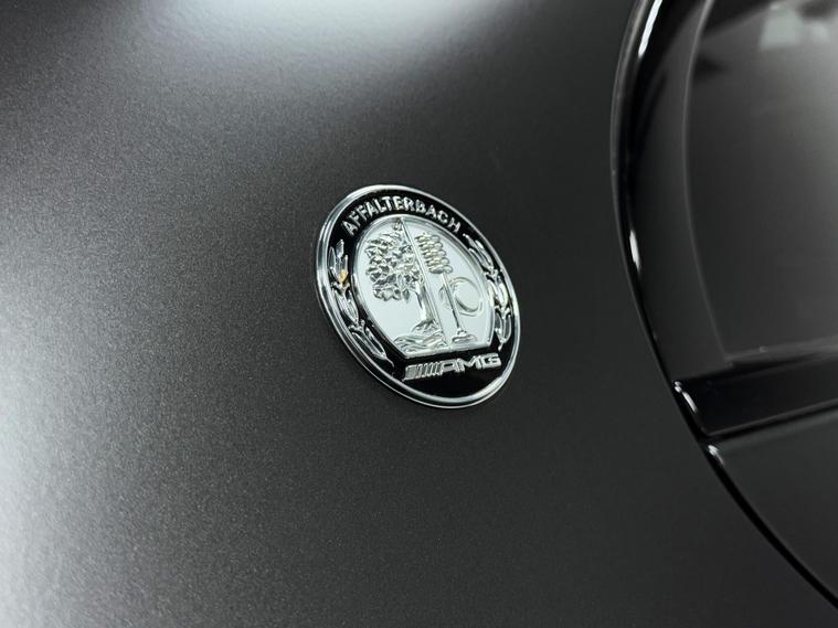 - Arrow-Shaped Wing Signet in High-Gloss Black above V8 BiTurbo 4MATIC Plus Badging