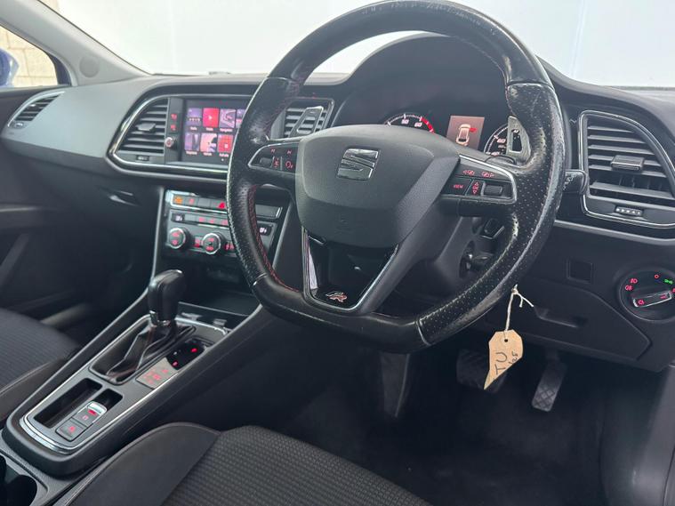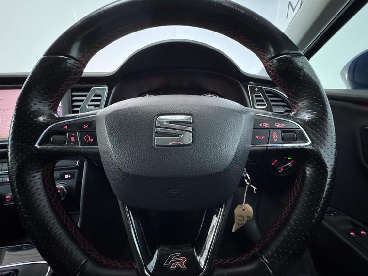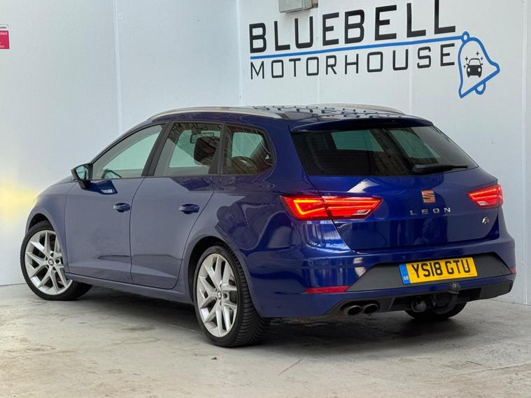Bluebell Motorhouse is proud to present to you a fantastic example of this SEAT Leon 1.8 TSI FR Technology ST. This vehicle offers an incredible amount of options from factory, some of which include Apple car play/android auto, Satellite Navigation, Electric front windows, Electric folding mirrors, Air Conditioning, Cruise control, aux, bluetooth, DAB, Radio CD player, Rear parking sensors and much more! This particular vehicle also impresses with an extensive service history ( 7 dealer services in total ). The current MOT expires on 29/05/2026. Also benefits from having 2 keys. The car is finished in the Manufacturer colour of Mystery Blue with cloth seats and 18 inch alloy wheels. This car is in excellent condition throughout, some very light marks and chips around the car but all fitting with age and mileage. It starts and drives very well. Any inspection is welcome. Comprehensive Warranty included, 12 months breakdown cover and much more which can be extended subject to terms and conditions! Last serviced on 14/03/2025 at 82, 284 miles. Low interest finance available.
