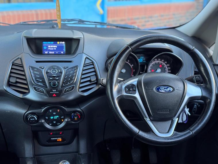 This 2016 Ford EcoSport T Zetec is a great example with a clear vehicle history check, offering peace of mind for its next owner. This stylish compact SUV is powered by an efficient 1.0 litre petrol engine, meeting Euro 6 emissions standards. The Zetec trim level provides a comfortable and practical driving experience, perfect for navigating city streets or embarking on longer journeys.With an impressive fuel economy of 52 miles per gallon, this EcoSport is designed to be kind to your wallet. Its low insurance group rating further contributes to its affordability, making it an attractive option for many drivers. Additionally, its low CO2 emissions indicate a more environmentally conscious choice compared to many other vehicles in its class.Call for more info * Viewing by appointments only available* Open 7-days a week Monday to Sunday * Bank Transfer* T&C's Apply * Warranty Supplied * P/X Welcome * 100%HPI Clear * VOSA * HPI * Experian Checked and Verified * 100% Customer Satisfaction. OUR SHOWROOM FACILITY ONLY HOLDS ONLY 25-30 CARS. THE REMAINING CARS ARE HELD AT OUR COMPOUND WHICH HAS NO VIEWING FACILITIES. PLEASE BE ADVISED TO CONTACT US BEFORE YOU TRAVEL AS YOU MAY HAVE TO WAIT 15 - 20 MINUTES WHILE WE COLLECT THE CAR YOU WISH TO VIEW.Delivery available for all our cars!!!.