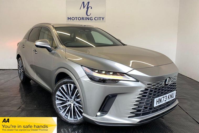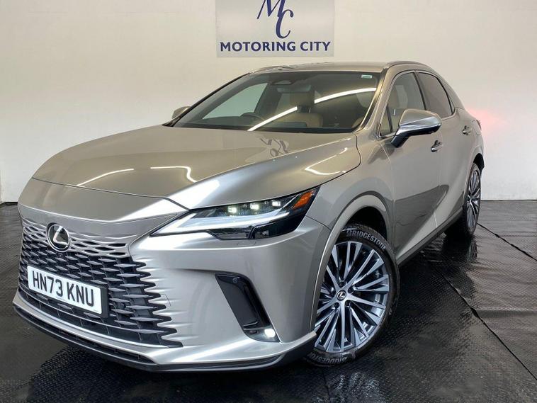 ULEZ COMPLIANT|PETROL HYBRID| AUTOMATIC |RECENTLY SERVICED BY MAIN DEALERS |PREMIUM PLUS E-CVT |KEYLESS |PARKING SENSORS | 360 CAMERA | REVERSE CAMERA |HEADS UP DISPLAY | ELECTRIC TAILGATE | ELECTRIC MIRRORS | ELECTRIC DRIVER & PASSANGER SEAT ADJUSTMENT | REAR PASSANGER TYPE C CHARGING | VOICE COMMAND | LANE ASSIST | PADDLE SHIFT | CRUISE CONTROL | AUTO WIPERS | AUTO HEADLIGHTS | DRIVER MEMORY SEAT | EV MODE | AUTO HOLD BRAKE | WIRELESS PHONE CHARGING | RADIO DAB, FM | BLUETOOTH | HEATED DRIVER & PASSANGER SEAT | COOLING DRIVER & PASSANGER SEAT | HEATED STEERING | MIRACAST | NAVIGATION | NORMAL, ECO, SPORT DRIVE MODE OPTION | ALL WHEEL DRIVE | APPLE CAR PLAY | ANDROID AUTO |HPI CLEAR |FREE AA BREAKDOWN COVER WITH ALL PURCHASES|FINANCE & WARRANTY AVAILABLE|DELIVERY AVAILABLE NATIONWIDE | £99 ADMIN FEEThis 2023 Lexus RX 350h Prem Plus presents an exceptional opportunity with remarkably low mileage for its age, having covered just 8700 miles. This Four Wheel Drive model boasts a 2.5 litre petrol hybrid engine, adhering to Euro 6 emission standards. It comes equipped with the comprehensive Extended Lexus Safety System Plus3, featuring Adaptive Cruise Control, and benefits from Ultrasonic Parking Sensors front and rear, complemented by a 360 Panoramic View Monitor for effortless parking. The advanced 3-Projector Bi-Beam LED Headlights with Auto High Beam ensure optimal visibility, while the Head Up Display keeps essential information within your line of sight. Experience the impressive performance of this Lexus RX, capable of accelerating from 0 to 62mph in a swift 7.9 seconds, a testament to its dynamic capabilities. The generous boot space offers practicality for all your needs, making it an ideal choice for both daily commutes and longer journeys. These highlights demonstrate how this particular RX 350h Prem Plus offers a superior driving experience and enhanced convenience compared to other vehicles in its class..