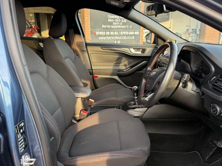 Boasting a full service history and a recent service completed in December 2024 at 44, 283 miles, this 2019 Ford Focus T ST-Line presents a compelling proposition. This Euro 6 compliant 1.0L petrol model, with just 51, 400 miles on the clock, is a testament to its careful ownership. More images when valeted, just arrived. It comes equipped with a Ford SYNC3 DAB Radio featuring a floating 6.5 inch touchscreen, Satnav & offering seamless integration with Android Auto and Apple CarPlay, alongside automatic headlights for enhanced convenience. We sell with a 6 month Warrantywise Platinum warranty and a new 12 months MOT, also an annual service completed for further peace of mind. 2 x keys & all handbooks on this smoker free lovely car. 12 Months AA Breakdown Membership included. AA Driveaway 5 Day Insurance available - Only £44.99 NEED FINANCE? No Problem - SAF Registered. Simply click 'Apply for finance' on our website dealer's website We are a FCA registered dealership. Prime or subprime finance. Excellent finance rates starting from as low as 12.9% APR (Subject to status and terms and conditions). For any further information and details to view please contact David, who has over 50 years personal Motor Trade experience. Buy with confidence. Delivery to your door is available, please ask for a quote. Just arrived & many more images when valeted.This Ford Focus ST-Line stands out with its impressive acceleration, reaching 0-62mph in just 10.0 seconds, indicating a more responsive driving experience compared to many similar vehicles. Its low CO2 emissions are also a notable advantage, suggesting greater fuel efficiency and a reduced environmental impact. Furthermore, the generous boot space ensures practicality for everyday needs and longer journeys, making it a well rounded choice for those seeking a capable and feature rich hatchback..