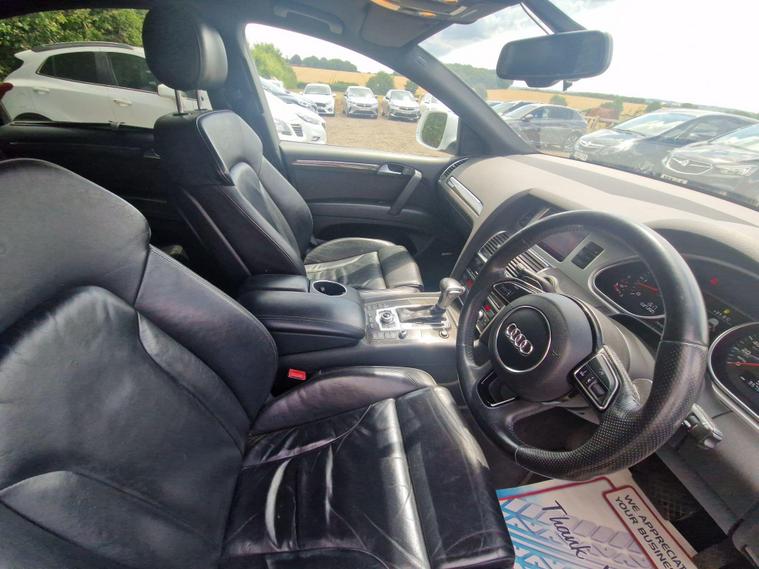 Automatic Audi Q7 3.0 TDI V6 S line Plus Tiptronic quattro Euro 5 (s/s) 5dr in great condition - The previous owner well maintained the car - The car was fully serviced last month - HPI Clear - Reverse Camera - Alloy Wheels - 2x keys - Privacy Glass // 12 months AA breakdown cover included// We offer the option of an extended national warranty of up to 3 years // Driveaway insurance available // PX Welcome // This 2012 Audi Q7 TDI V6 S line Plus presents a remarkable opportunity with its exceptionally low mileage of just 96, 000 miles for a vehicle of its age. This impressive four wheel drive SUV boasts a powerful 3.0 litre diesel engine and offers comfortable seating for seven occupants. The S line Plus trim enhances its appeal, and notable features include rear acoustic parking assistance, Bi-Xenon Plus headlights for superior visibility, and heated front seats for added comfort. You'll also appreciate the dual zone electronic climate control and the high specification mobile telephone preparation with Audi Connect, which includes Bluetooth connectivity.The Q7 TDI V6 S line Plus stands out from similar vehicles with its exceptional performance, achieving 0-62mph in a swift 7.8 seconds, demonstrating its dynamic capability. Its large boot space ensures practicality for all your needs, whether for family outings or everyday tasks. Furthermore, this model benefits from a low insurance group, making it an economical choice to own and run. With a substantial towing weight of 3200 kg, this Audi Q7 is as capable as it is refined..