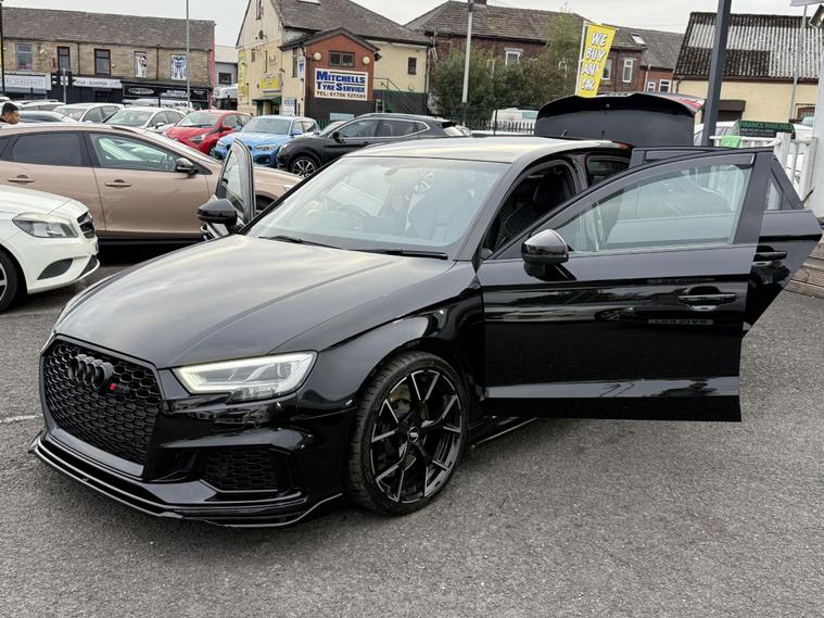 This 2020 Audi RS3 TFSI boasts a full service history, ensuring its excellent provenance and offering peace of mind for its next owner, with an MOT valid until April 2026. This impressive model features a powerful 2.5 litre petrol engine paired with a four wheel drive drivetrain, delivering exhilarating performance. It meets Euro 6 emission standards. Inside, you'll find heated front seats for comfort, Hill Hold Assist for easier driving, and the convenience of Online Media Streaming. The striking exterior is enhanced by the Matrix LED Exterior Lighting Pack, including advanced LED headlights, and the sporty appeal is further amplified by the Audi Sport Pack.The Audi RS3 TFSI stands out with its remarkable acceleration, achieving 0-62mph in just 4.1 seconds. This rapid acceleration demonstrates its superior performance capabilities compared to many other vehicles in its class. The combination of its potent engine, advanced four wheel drive system, and sophisticated lighting technology makes this RS3 a truly engaging and capable car..