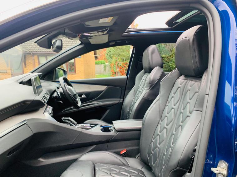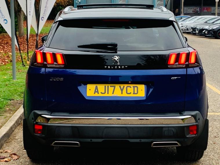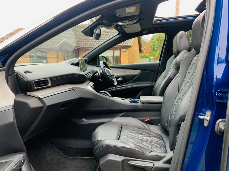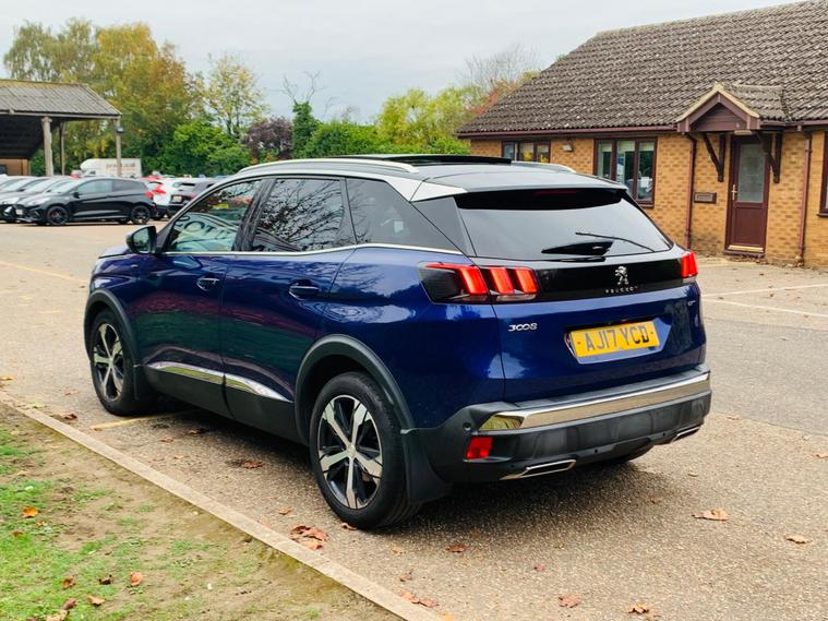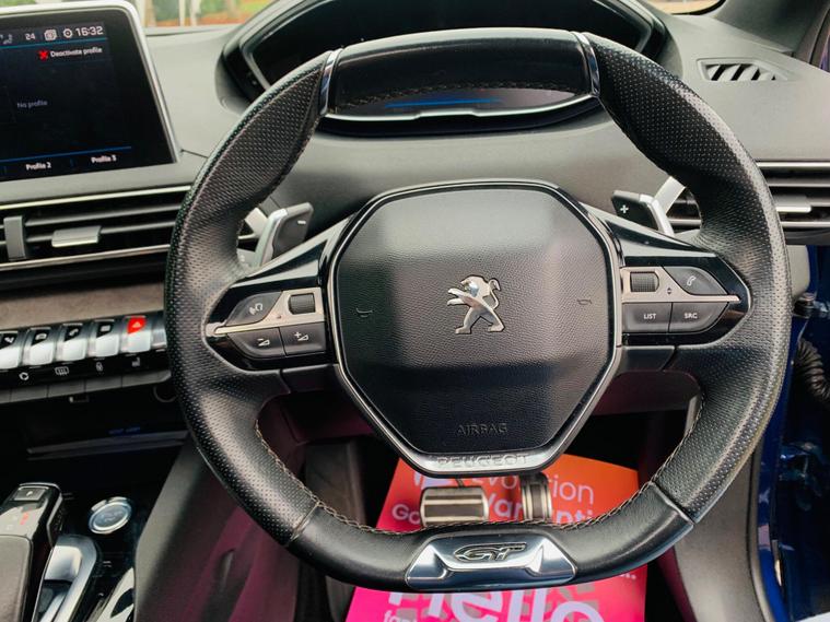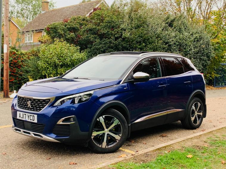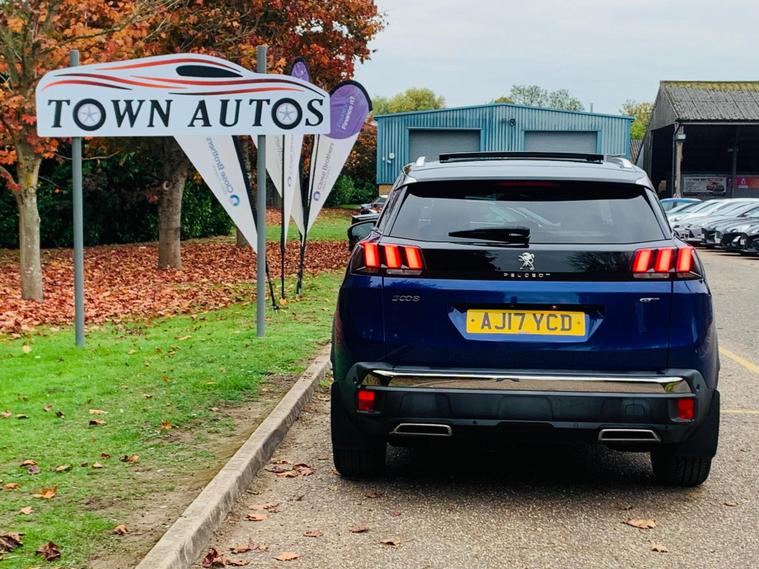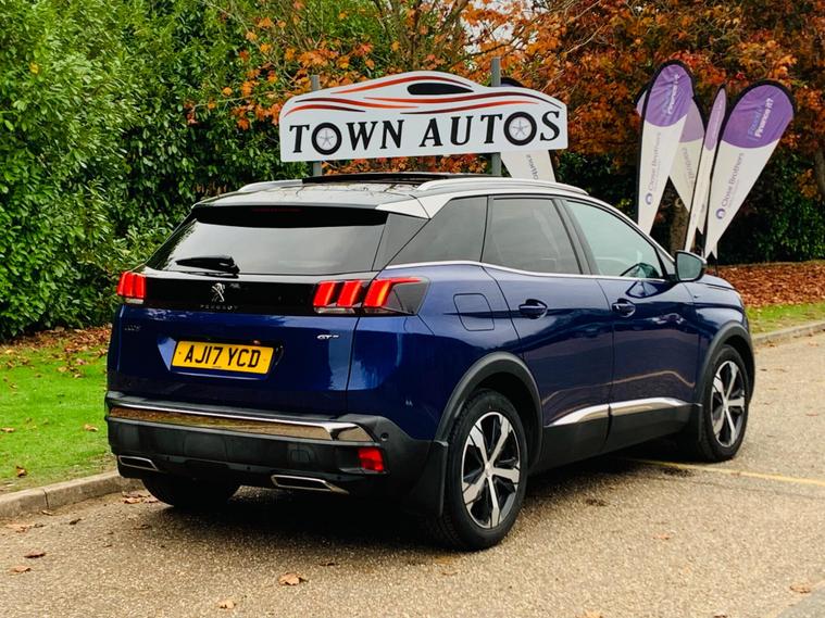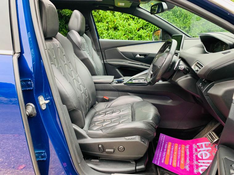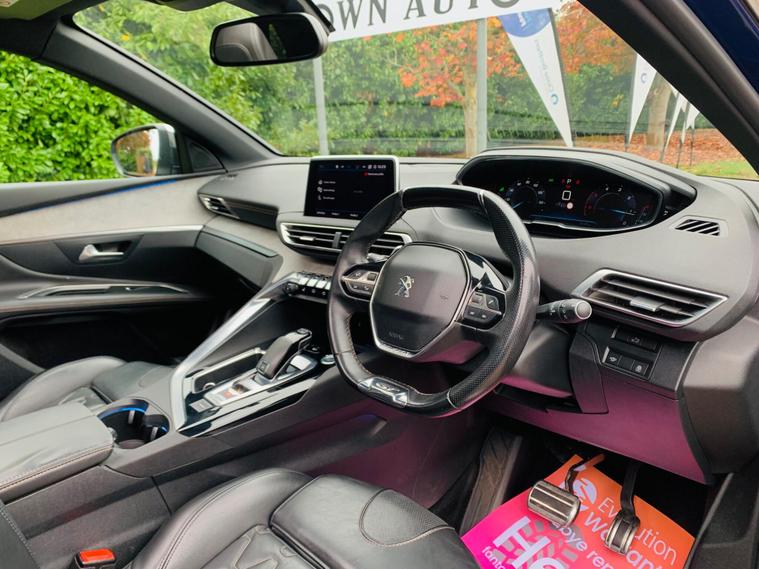 PANORAMIC + SUNROOF, FULL LEATHER SEATS, ONLY 1 FORMER KEEPER, MAIN DEALER SERVICE HISTORY, 9 SERVICE STAMPS IN THE BOOK, SPARE KEY, MOT IS TILL 8 October 2026, This 2017 Peugeot 3008 BlueHDi GT boasts a clear vehicle history, offering peace of mind for its next owner. This stylish SUV is powered by a robust 2.0 litre diesel engine, meeting Euro 6 emission standards. Inside, you'll find a sophisticated cabin featuring Blue Ambient Lighting that illuminates the Head Up Instrument Panel, complete with a Head Up Display for essential information. Comfort is paramount with heated front seats and a driver's seat offering a multi-point massage function. Parking is made effortless thanks to front and rear parking sensors, complemented by a parking assistance system. Stay connected on the go with the integrated Bluetooth telephone facility, and enjoy enhanced visibility with the Visibility Pack, which includes automatic headlights. Experience impressive efficiency with this Peugeot 3008, achieving a remarkable 59 miles per gallon, which is better than many similar vehicles. Its low CO2 emissions also contribute to its appeal. For those needing practicality, the generous boot space ensures you can carry all your essentials with ease. Performance is also a strong point, with the vehicle accelerating from 0 to 62 miles per hour in just 8.9 seconds, demonstrating its capable acceleration compared to other vehicles in its class..