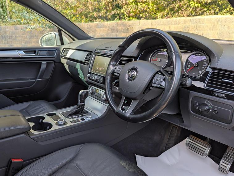 This 2016 Volkswagen Touareg TDI V6 R-Line presents a compelling proposition with its remarkably low mileage for its age, having covered just 76, 494 miles. This impressive four wheel drive SUV is equipped with a powerful 3.0 litre diesel engine, meeting Euro 6 emission standards. The R-Line trim level ensures a premium experience, enhanced by features such as keyless entry, a heated steering wheel, and Bluetooth telephone preparation for seamless hands free calls. Comfort is further elevated by the 2 zone electronic climate control with automatic air recirculation and a delightful panoramic electric sunroof.The Touareg R-Line offers exceptional practicality, boasting a large boot space perfect for all your needs, and its impressive towing weight of 3500 kg makes it ideal for hauling. For those concerned about running costs, this vehicle sits in a low insurance group, offering an advantage over many similar models. Its performance is equally noteworthy, with an acceleration of 0-62mph achieved in a swift 7.3 seconds, demonstrating its dynamic capability. This vehicle comes with a 3 month warranty and a 12 month MOT provided on purchase, alongside partial service history, offering peace of mind for its next owner..
