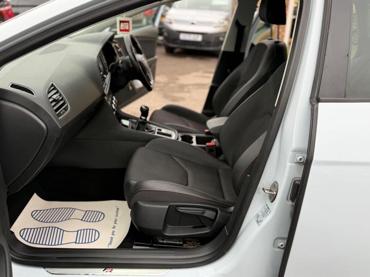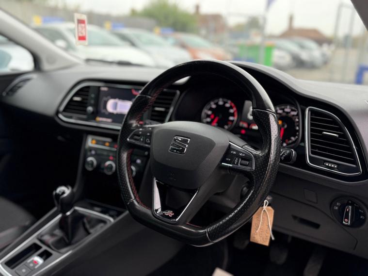 - Steering Wheel - Flat-Bottomed Perforated Leather with Red Stitching and FR Logo