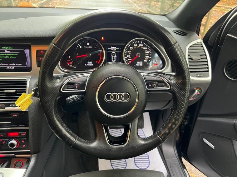 Boasting a clear vehicle history check and an MOT valid until June 2026, this 2013 Audi Q7 TDI V6 S line offers peace of mind. This four wheel drive model features a powerful 3.0 litre diesel engine and provides comfortable seating for seven occupants. Its last service was completed on 11 October 2025 at 106, 132 miles, and it comes with a 3 month warranty for added reassurance. Notable features include a premium BOSE Surround Sound System, automatic headlights with a light sensor, rear parking sensors with acoustic indicators, and privacy glass.This Audi Q7 is designed for practicality and performance, offering a generous boot space perfect for families or those needing extra room. Its acceleration from 0 to 62mph in just 9.1 seconds demonstrates its capable performance, indicating it is more responsive than many similar vehicles. Furthermore, its inclusion in a low insurance group highlights its cost effectiveness, making it an attractive option for a wide range of drivers.VERY WELL MAINTAINED 7 SEATER WITH SERVICE HISTORY + FRESHLY SERVICED AT CURRENT MILEAGE + LONG MOT TILL JUNE 2026 WITH NO ADVISORY + BRILLIANT DRIVE + TIDY CONDITION THROUGHOUT RESPECTIVELY FOR ITS AGE AND MILEAGE + 2 FORMER KEPERS + HPI CLEAR WITH REPORT + SPARE KEY + FINANCE AVAILABLE + OUR ADDRESS IS RG45 6NZ, WE OPEN 7 DAYS A WEEK FROM 10 AM TO 6 PM. CALL US, OR TEXT US AT 01276914759R 01276914759, WE HAVE MORE THAN 100 CARS IN STOCK, VISIT OUR WEBSITE FOR MORE CARS WE OFFER FREE HOME DELIVERIES UP TO 30 MILES, AND NATIONWIDE DELIVERY IS AVAILABLE.