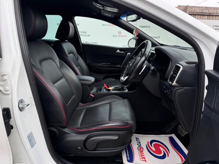 FINANCE & PCP AVAILABLE, COMPLEMENTARY WARRANTY INCLUDED, GOOD CONDITION, WE TAKE PART EXCHANGE! Kia Sportage 1.6 T-GDi GT-Line DCT AWD Euro 6 (s/s) 5dr. HPI Clear, Full KIA Service History, 12 Months MOT Included With No Advisories, 1 Owner, 2 Keys, EURO6 ULEZ Compliant, Keyless Entry, Keyless Start, Cruise Control, Speed Limiting Function, Reverse Camera, Parking Sensors - Front And Rear, Speed Limit Information Function, Lane Keep Assist System, Lane Departure Warning, Drive Mode Select Sport, Paddle Shifts, Sports Gearbox Mode With Manual Shifting Function, Power Steering, 4 Wheel Drive, All Wheel Drive Locking System, Hill-Start Assist Control, Downhill Brake Control, Traction Control, Trailer Stability Assist, Electronic Stability Control, Electronic Brakeforce Distribution, Anti-Lock Braking System, Tyre Pressure Monitoring System, Automatic Headlights, LED Bi-Function Headlights with Auto Levelling and Adaptive Lighting System, LED Daytime Running Lights, LED Ice-Cube Front Fog Lights, LED Rear Tail Lights, Headlights - High Beam Assist, Automatic Rain Sensing Wipers, Electric Windows, Electric Mirrors, Electrically Folding Mirrors, Front And Rear Heated Seats, Automatic Dual Zone Climate Control, Air Conditioning, Front And Rear Screen Demister, Colour Touchscreen Interface, Apple Carplay, Android Auto, Drivers Information Display, Navigation, Traffic Information, Bluetooth, Radio, DAB, AUX, USB, CD, Telephone Connection, Voice Control, Full Leather Seats Black With Red Stitching/Piping, Gloss Black Interior Trims, Roof Rails, Privacy Glass, Gloss Black/Chrome Exterior Trims, Exterior Badging, GT Line Exhaust Design, 19inch Alloy Wheels.ALL VEHICLES ARE FULLY INSPECTED PRIOR TO SALE. Feel free to enquire about our competitive Financial packages. We can assist you in securing finance for your New car with ease- regardless of your credit status/history. All of our cars are regularly price checked to be amongst the most competitive on the market! We include a COMPLEMENTARY WARRANTY on all our vehicles. Be our next happy customer today! dealer's website