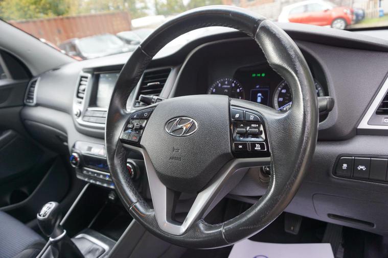 This 2018 Hyundai TUCSON GDi SE Nav boasts a full service history, with its last service completed on 2025-04-10 at 64, 472 miles, and an MOT valid until April 2026, offering you peace of mind. This Euro 6 compliant 1.6 litre petrol model comes with a 6 month warranty for added security. The SE Nav trim level includes desirable features such as heated front seats for those colder mornings, an 8 inch touchscreen satellite navigation system with traffic messaging channel, and a handy reversing camera. You'll also benefit from rear parking sensors, dual zone climate control with ioniser, and automatic headlights with a dusk sensor.The Hyundai TUCSON GDi SE Nav stands out with its impressive 45 mpg fuel economy, making it an economical choice for your journeys. Its low insurance group rating further enhances its appeal by potentially reducing your running costs compared to similar vehicles. Furthermore, the TUCSON offers generous boot space, providing ample room for shopping, luggage, or sports equipment, making it a practical and versatile option for everyday use and longer trips..