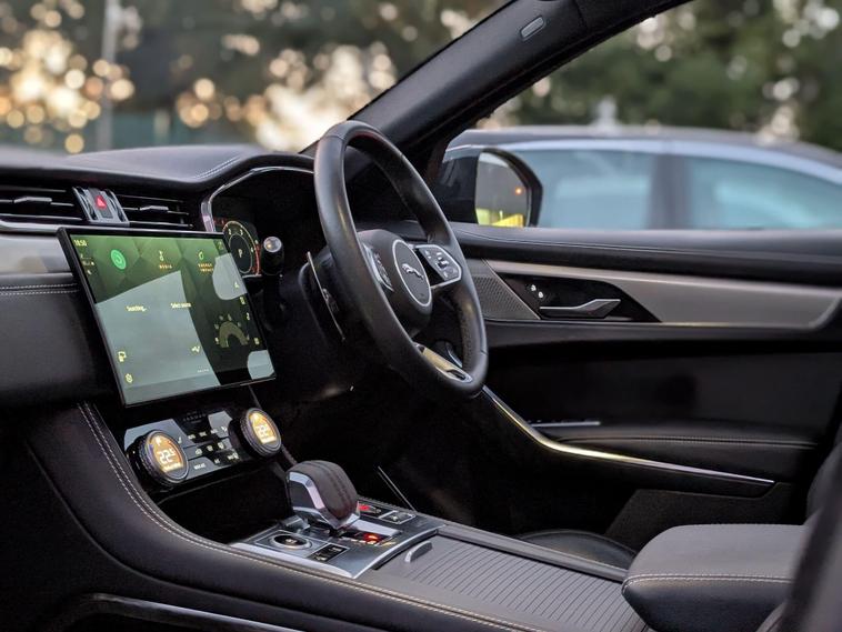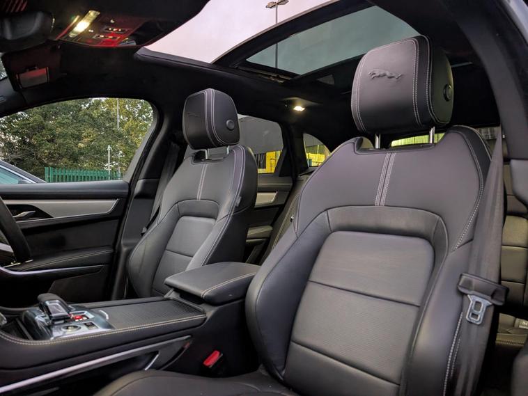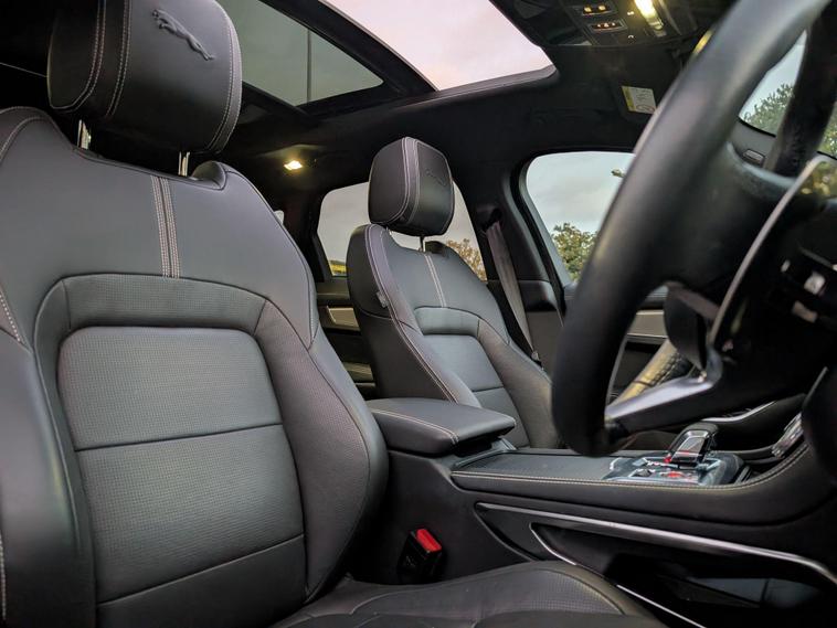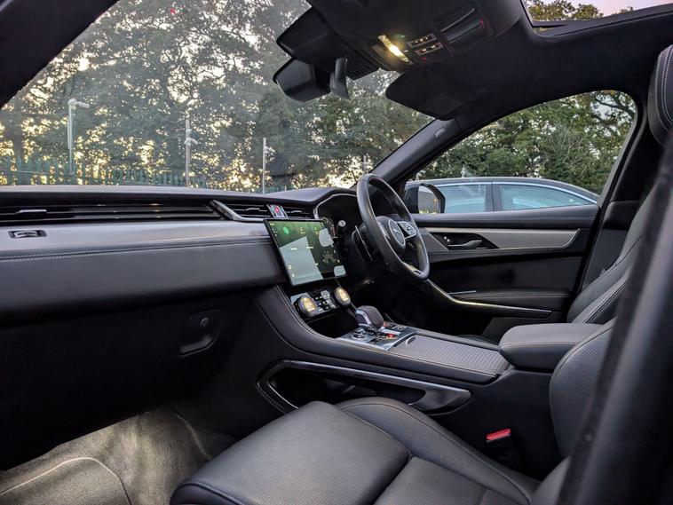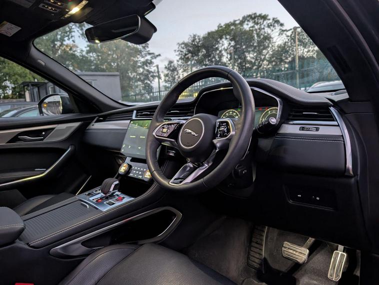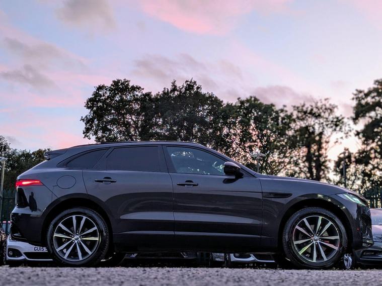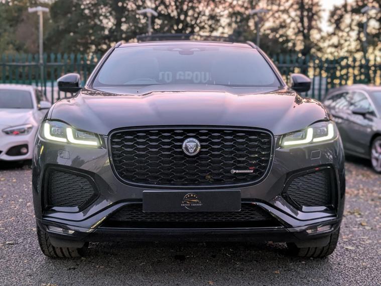 This 2024 Jaguar F-PACE D200 R-Dynamic SE Black is a superb example, having had only one owner from new. This striking SUV boasts a powerful yet efficient 2.0 litre diesel engine, paired with a sophisticated four wheel drive system for confident handling in all conditions. As a Euro 6 compliant vehicle, it meets stringent emission standards. The R-Dynamic SE Black trim level enhances its already impressive presence, and you'll appreciate the generous towing weight of 2400 kg. Inside, experience the luxury of 4-zone climate control, a sliding panoramic roof, and a premium Meridian surround sound system, all complemented by the convenience of wireless device charging with a phone signal booster and the Comfort Pack.The Jaguar F-PACE D200 R-Dynamic SE Black offers an exceptional driving experience, highlighted by its impressive fuel economy of 44 mpg, demonstrating its efficiency compared to similar vehicles. Its low CO2 emissions further underscore its responsible design. For those needing practicality, the large boot space provides ample room for luggage or shopping. Performance is also a strong suit, with an acceleration of 0-60mph achieved in just 7.8 seconds, showcasing its dynamic capabilities..