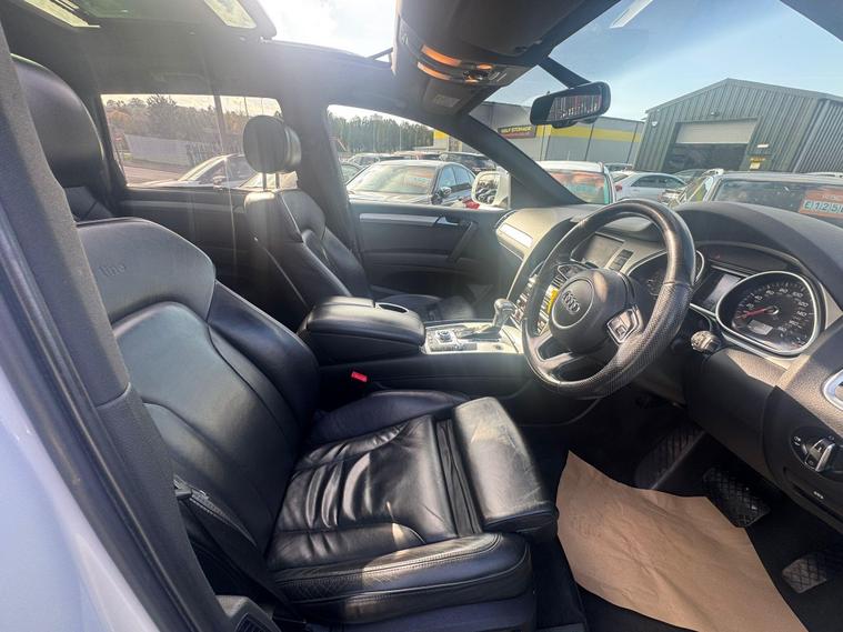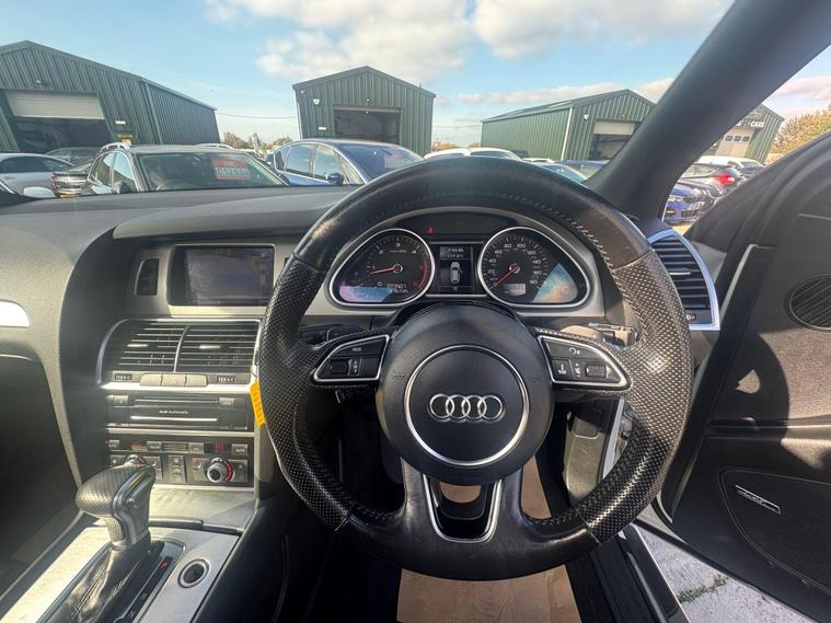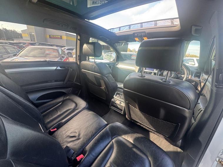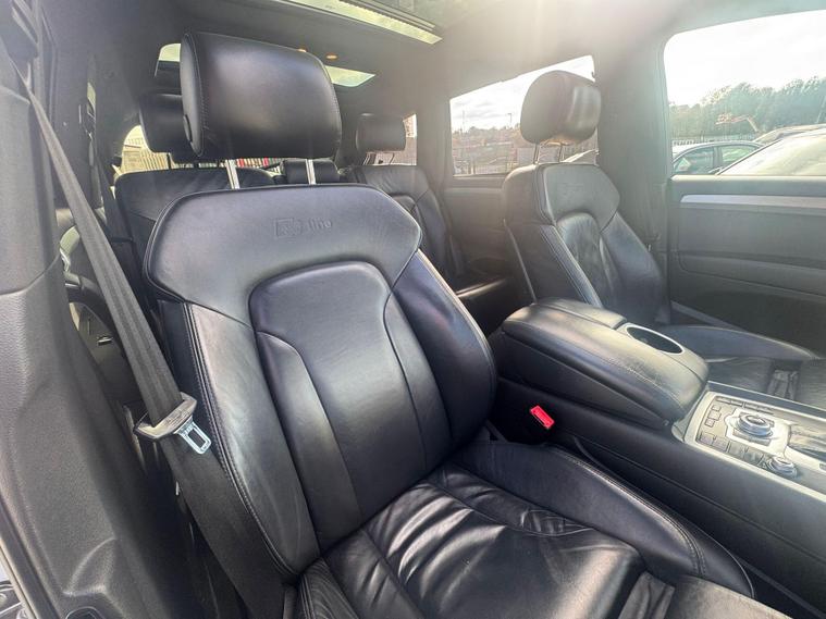 This 2014 Audi Q7 TDI V6 S line Sport Edition offers a compelling blend of performance and practicality. As a 7 seat, four wheel drive SUV, it is powered by a robust 3.0 litre diesel engine, capable of accelerating from 0 to 62 miles per hour in just 7.8 seconds. This particular model boasts the sought after S line Sport Edition trim, enhancing its already impressive styling. Inside, you will find a spacious cabin featuring a panoramic sunroof, complete with an opening function, and a premium BOSE surround sound system for an immersive audio experience. For added convenience and safety, it includes rear parking sensors and the Audi Parking System Advanced with a reversing camera, making manoeuvring effortless.The Audi Q7 TDI V6 S line Sport Edition is designed to impress, and its specifications highlight its superior capabilities. The impressive 3200 kg towing weight means it is well equipped for carrying substantial loads or towing a caravan or trailer. Furthermore, its placement in a low insurance group makes it a more economical choice for everyday driving. These features collectively demonstrate why this Audi Q7 stands out as a refined and capable large SUV..