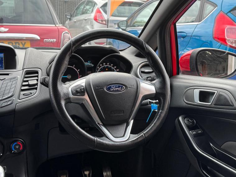 This 2017 Ford Fiesta T ST-Line offers an exceptional blend of style and efficiency, making it a standout choice. Powered by a responsive 1.0L petrol engine, this Euro 6 compliant model delivers an impressive 0-62mph in just 9.4 seconds. Inside, you'll find manual air conditioning for your comfort and the Ford DAB system with Ford SYNC, which includes Bluetooth connectivity for seamless phone integration and audio streaming.Experience remarkable fuel economy with this Fiesta, achieving a highlight of 66 miles per gallon, which is significantly better than many other vehicles in its class. Furthermore, its low CO2 emissions contribute to a more environmentally conscious drive. This combination of performance, advanced technology, and outstanding efficiency makes the 2017 Ford Fiesta T ST-Line a truly compelling option..