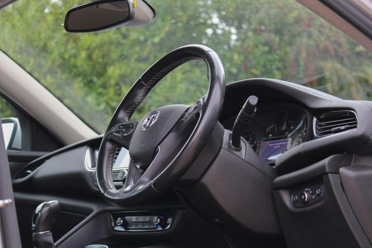 - Steering Wheel - Three-Spoke Design - Leather Covered - Satin Chrome-Effect Bezel
