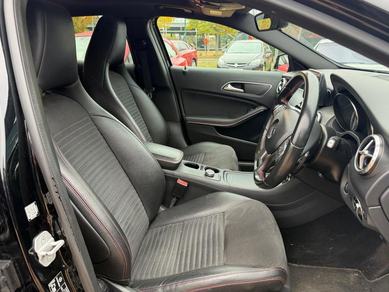 This 2015 Mercedes Benz GLA220 CDI AMG Line offers a compelling blend of style and performance. Featuring a robust 2.1L diesel engine and four wheel drive, this Euro 6 compliant model is presented in the desirable AMG Line trim. Notable features include striking 19in AMG 5-spoke alloy wheels painted in black with a high sheen rim, a panoramic sliding glass sunroof for an airy cabin feel, and automatic climate control. Stay connected with integrated Bluetooth and benefit.