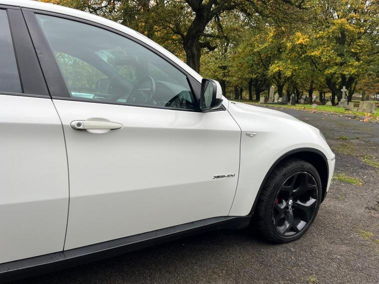 BMW X6 3.0 40D STEPTRONIC XDRIVE IN A WHITE EXTERIOR COLOUR WITH BLACK LEATHER INTERIOR... COMES WITH A SERVICE HISTORY LAST DONE AT 117K MILES... COMES WITH A LONG 12 MONTHS MOT... FEATURING MULTIFUNCTION STEERING WHEEL WITH RADIO AND PADDLESHIFT CONTROLS... REVERSE CAMERA... ELECTRIC OPENING BOOT... PRIVACY GLASS... CRUISE CONTROL... AUTO LIGHTS... ELECTRIC HANDBRAKE WITH AUTO HOLD... SOS CONTROLS... HEATED FRONT SEATS... FRONT AND BACK PARKING SENSORS... BMW CD RADIO WITH BUILT IN SATNAV, BLUETOOTH CONNECTIVITY AND MENU OPTIONS... PUSH BUTTON START... FOG LIGHTS... FRONT ELECTRIC SEATS... CLIMATE CONTROL WITH FRONT AND BACK HEATED WINDOWS... ELECTRIC ADJUSTABLE SIDE FOLDING MIRRORS... ALL ROUND ELECTRIC WINDOWS... BACK SEATS ARM REST... CUP HOLDERS... ALLOY WHEELS WITH DECENT TREAD ALL ROUND... WARRANTY INCLUDED... ALL PART EXCHANGES ARE WELCOME... OPTIONAL NATIONWIDE DELIVERY EXTRA... BOOK-INS AND VIDEO VIEWINGS ARE AVAILABLE... TEST DRIVES ARE WELCOME... FOR MORE INFORMATION CALL US TODAY ON 01616232309..