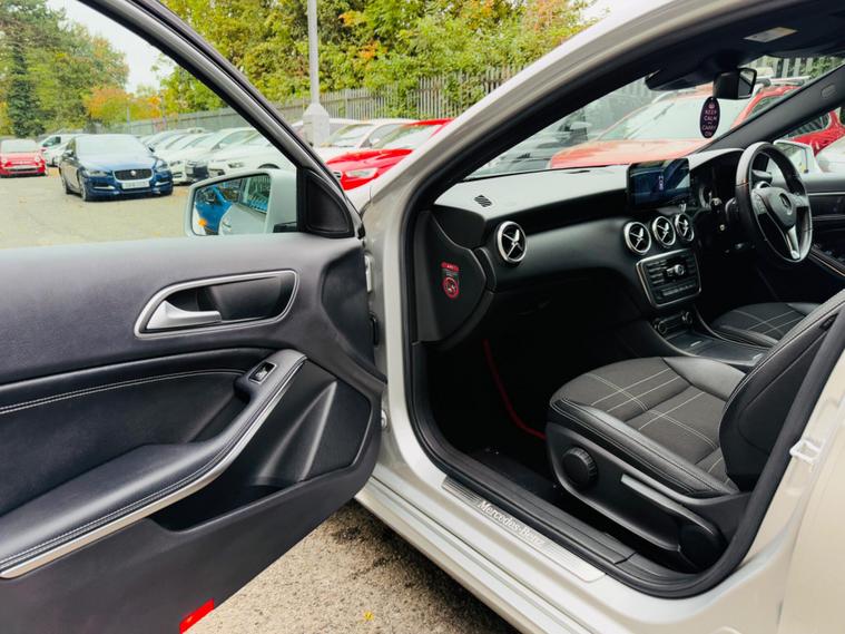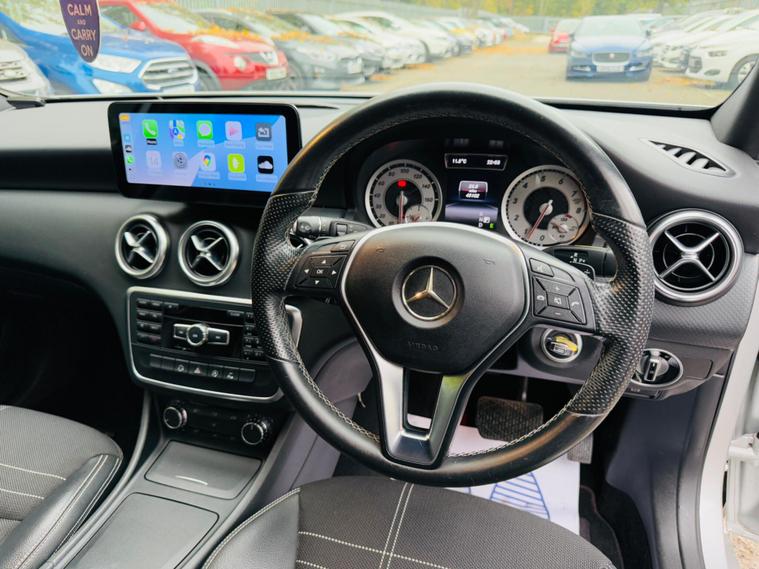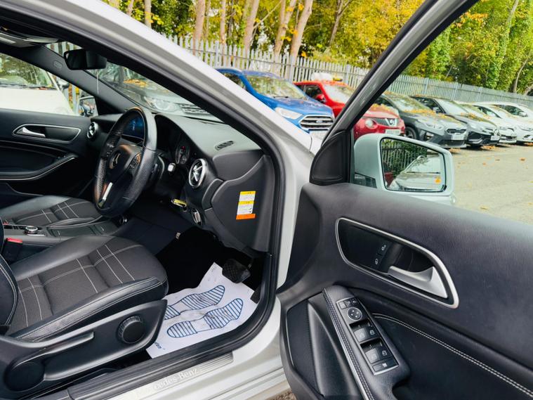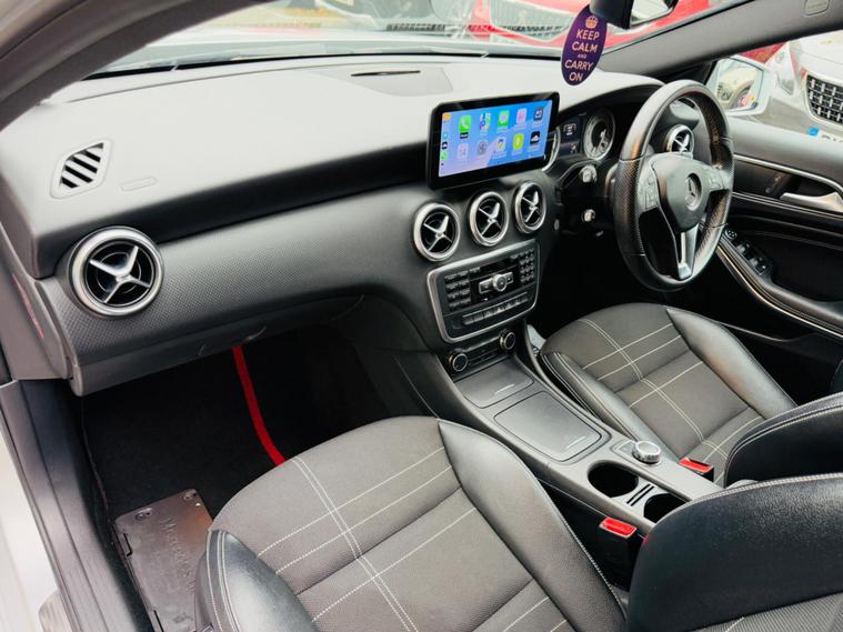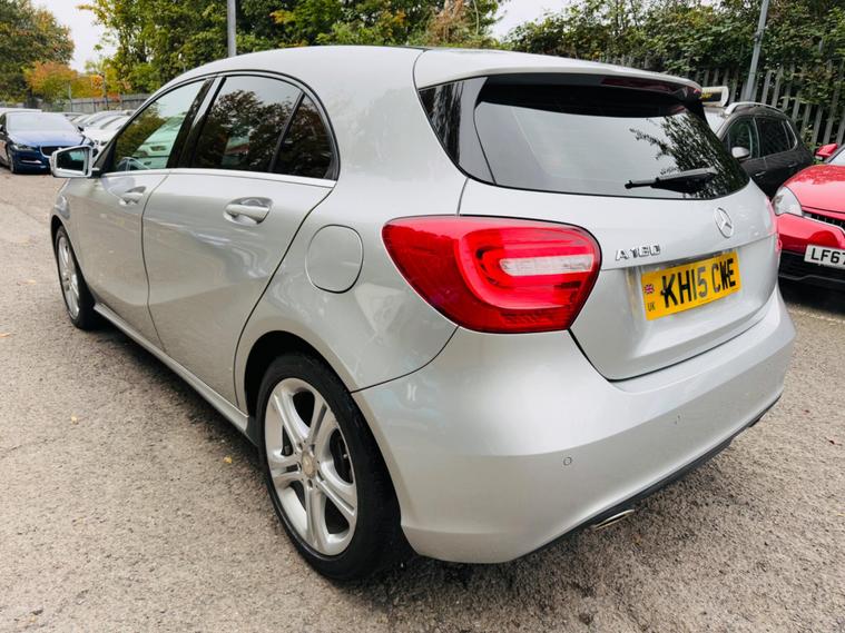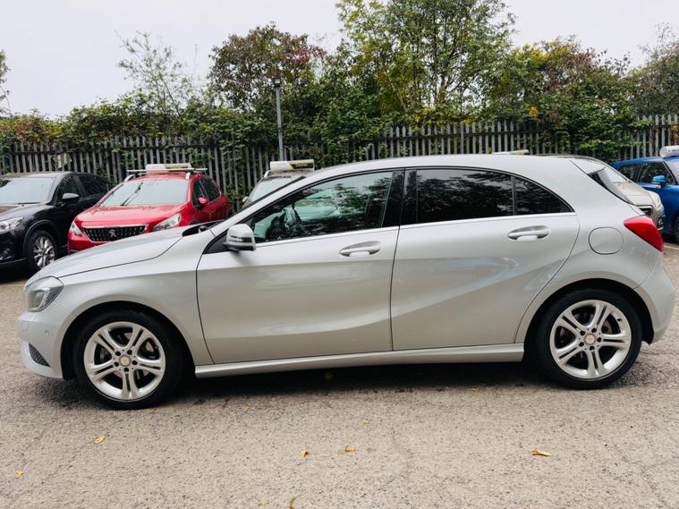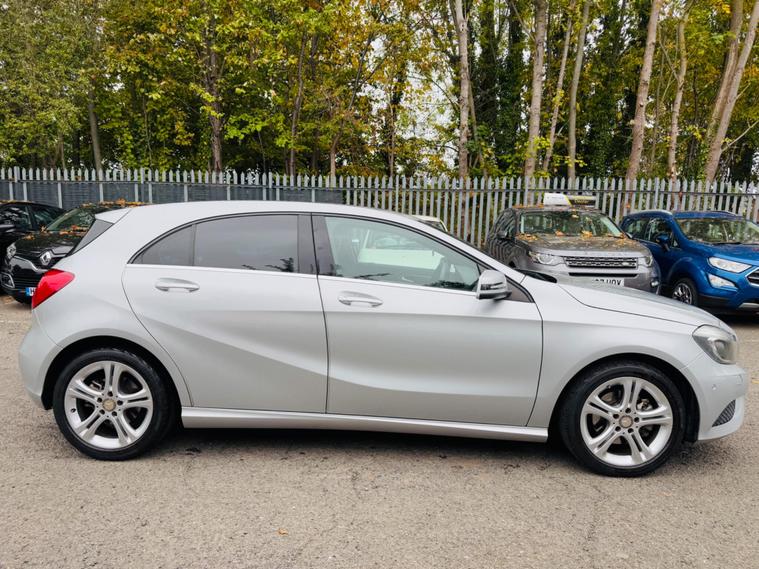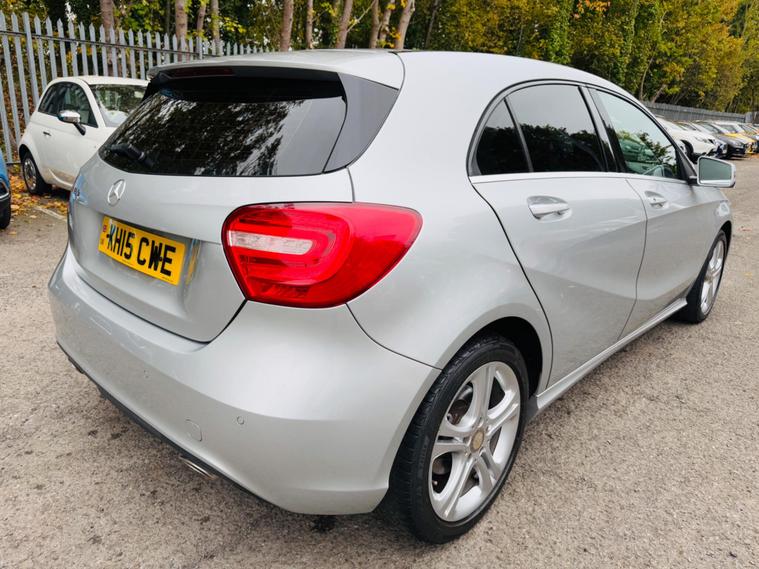 SILVER, FINANCE AVAILABLE, NAVIGATION SYSTEM, HALF LEATHER SEATS, REVERSE CAMERA, CRUISE CONTROL, APPLE CAR PLAY, ONLY ONE OWNER, ULEZ COMPLIANTWARRANTED AND VARIFIABLE LOW MILEAGE.This 2015 Mercedes Benz A Class A180 Sport boasts exceptionally low mileage for its age, having covered just 45, 110 miles. This Euro 6 compliant 1.6 litre petrol model, presented in the Sport trim, offers a compelling blend of style and practicality. Its MOT is valid until September 2026, providing peace of mind. Inside, you'll find convenient features such as Headlight Assist for automatic illumination, Bluetooth connectivity for seamless audio and calls, and Thermotronic automatic climate control for dual zone comfort. The 180 degree reversing camera with parking guidelines makes manoeuvring effortless.The A Class A180 Sport stands out with its impressive acceleration, reaching 0-62mph in a brisk 8.6 seconds, demonstrating its spirited performance. This vehicle also benefits from a low insurance group, making it an economical choice for many drivers. Furthermore, its generous boot space ensures ample room for shopping, luggage, or sports equipment, highlighting its versatility for everyday use and longer journeys..