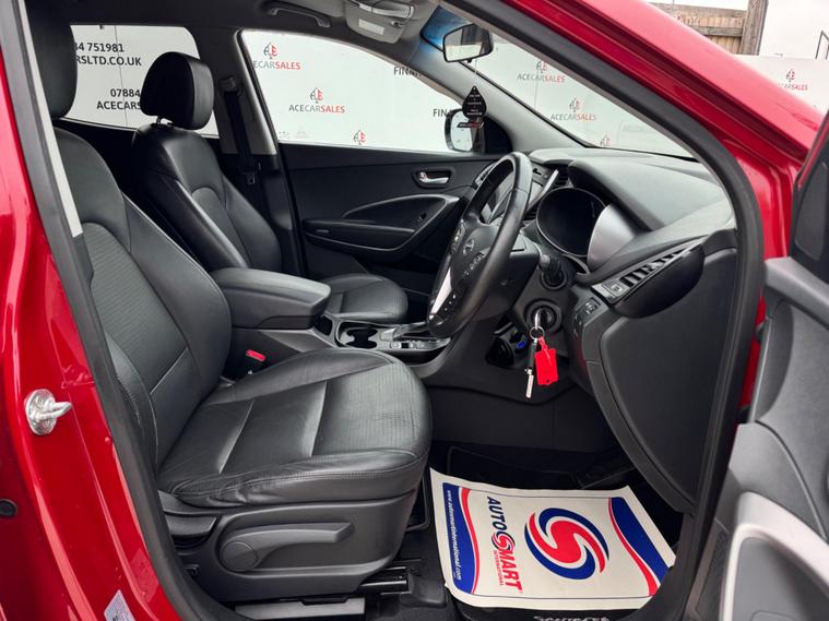 FINANCE & PCP AVAILABLE, COMPLEMENTARY WARRANTY INCLUDED, GOOD CONDITION, WE TAKE PART EXCHANGE! Hyundai Santa Fe 2.2 CRDi Premium Auto 4WD Euro 5 5dr (7 seat). HPI Clear, Full Service History, 12 Months MOT Included With No Advisories, 4 Owners, 2 Keys, Insurance Group 19, Cruise Control, Speed Limiting Function, Start/Stop Function, Active ECO, Parking Sensors - Rear, Reverse Camera, Hill-Start Assist Control, Downhill Brake Control, Four Wheel Drive, Differential Locking System, Power Assisted Steering, Steering Modes Sport/Normal/Comfort, Suspension - Self Levelling, Active Hood System, Traction Control, Anti-Lock Brake System, Trailer Stability Assist, Vehicle Stability Management, Electronic Stability Programme, Electronic Brake Force Distribution, Electric Parking Brake With Auto Hold Function, Headlights - Halogen, Daytime Running Lights, Front Fog Lights, Rain Sensing Front Wipers, Electric Windows, Electric Mirrors, Powerfolding Mirrors, Front Heated Seats, Automatic Dual Zone Climate Control, Air Conditioning, Front And Rear Screen Demister, Colour Touchscreen Media Interface, Drivers Information Cluster, Navigation, Traffic Information, Bluetooth, Radio, AUX, USB, CD, Telephone Connection, Voice Control, Multifunctional Steering Wheel, Full Leather Seats, Santafe Design Door Sills, Exterior Badging, Roof Rails, Privacy Glass, 18inch Alloy Wheels.ALL VEHICLES ARE FULLY INSPECTED PRIOR TO SALE. The bodywork is in excellent condition and the car drives superbly. We welcome you to view and test drive our showroom condition vehicles. Wish to make this purchase hassle free with ease? Feel free to enquire about our competitive Financial packages. We can assist you in securing finance for your New car with ease- regardless of your credit status/history. All of our cars are regularly price checked to be amongst the most competitive on the market! We include a COMPLEMENTARY WARRANTY on all our vehicles. Be our next happy customer today! dealer's website
