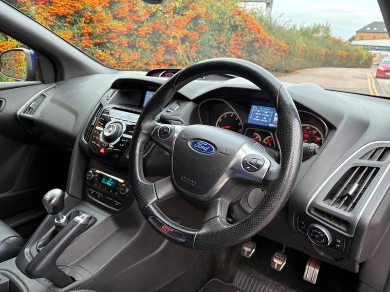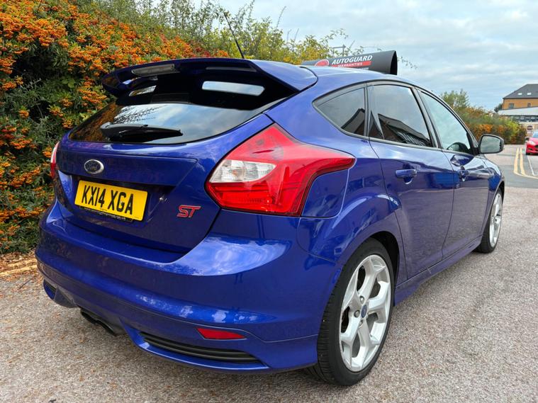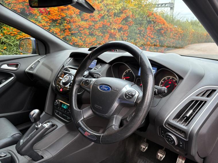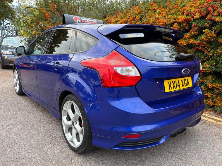This 2014 Ford Focus T ST-2 boasts a clear vehicle history, offering you peace of mind. Powered by a responsive 2.0L petrol engine, this ST-2 variant is equipped with DEATC dual zone electronic automatic temperature control for personalised comfort and automatic headlights that adjust to changing light conditions. The spacious boot provides ample room for all your needs.Experience exhilarating performance with an impressive 0-62mph acceleration time of just 6.5 seconds, demonstrating its dynamic capabilities. This Focus ST-2 stands out from other vehicles in its class due to its combination of sporty performance, advanced climate control, and practical large boot space, making it a well rounded choice for any driver..