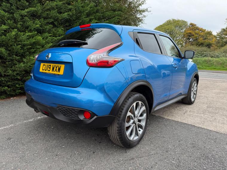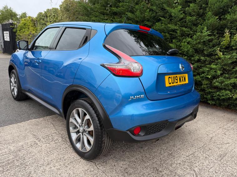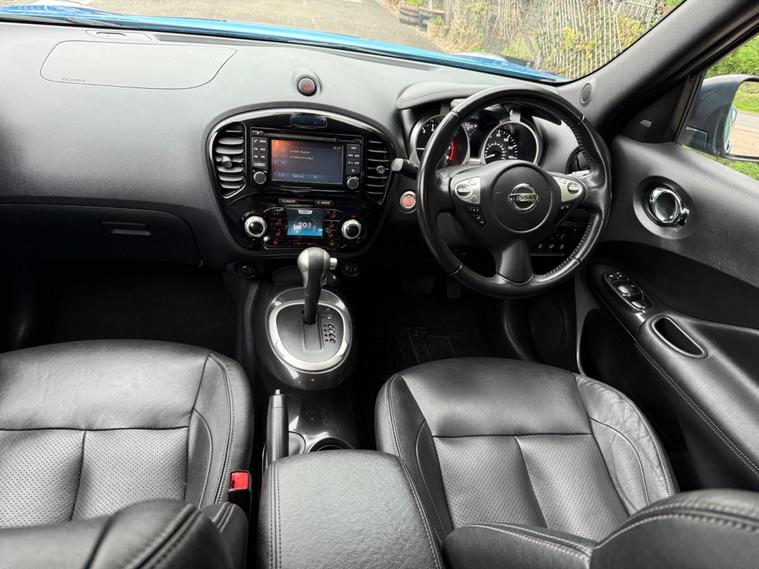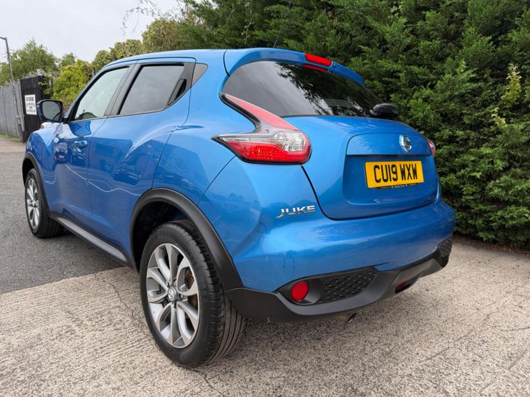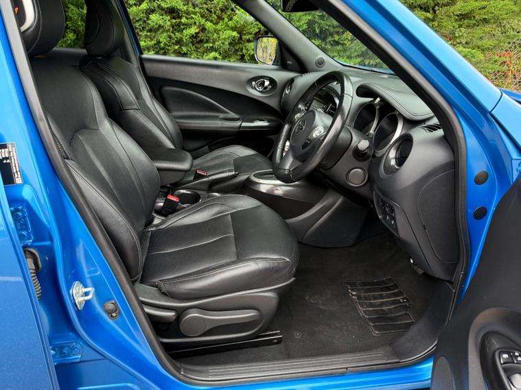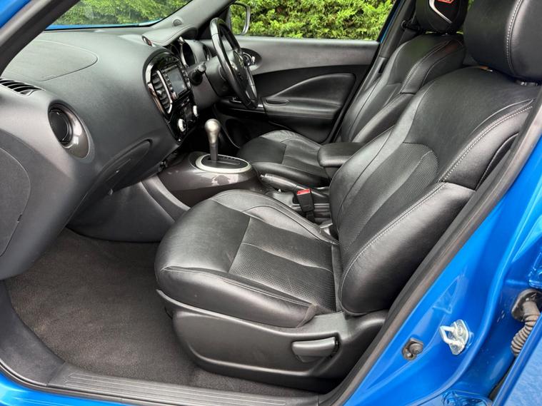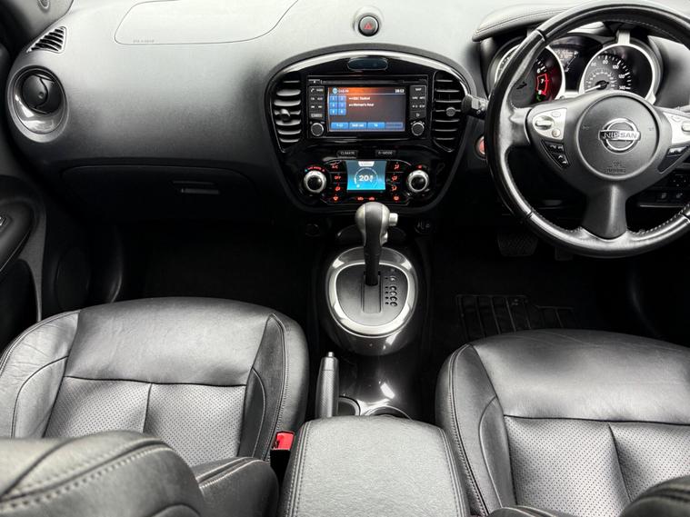 This 2019 Nissan Juke Tekna boasts a full service history, with its last service completed on 2025-10-13 at 45, 162 miles, and comes with a clear vehicle history check for your peace of mind. This stylish Tekna variant is equipped with a 1.6 litre petrol engine, meeting Euro 6 emissions standards. Inside, you'll find premium black leather seats, including heated front seats, and a sleek black centre console. The exterior is enhanced by a black exterior pack, complementing the car's distinctive design. For convenience and safety, it features Bluetooth integration for seamless phone connectivity, a 360 degree around view monitor for effortless parking, and a colour reversing camera. A 6 month warranty is also included.The Nissan Juke Tekna offers several advantages that set it apart. Its impressive fuel economy of 47 mpg means fewer trips to the petrol station, making it an economical choice for your daily journeys. Furthermore, its low insurance group rating indicates that running costs are kept to a minimum, offering excellent value for money. These highlights demonstrate how this Juke provides a more cost effective and efficient driving experience compared to many other vehicles in its class..