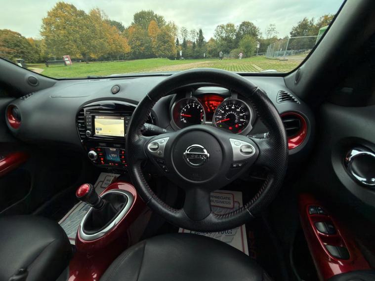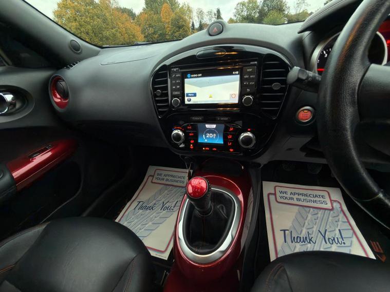 Nissan Juke 1.2 DIG-T Tekna SUV 5dr Petrol Manual Euro 6 (s/s) (115 ps)Petrol | Manual | Black | 1 OwnerULEZ Compliant | HPI Clear | Warranted MileageFresh Service | Fresh MOT | 6 Months WarrantyFree Breakdown Cover | Nationwide Delivery AvailableA beautiful one-owner Nissan Juke Tekna in excellent condition throughout. Packed with premium features, this car delivers comfort, style, and economy — perfect for both city and motorway driving.Key Features:Satellite NavigationHeated Leather Seats360° Parking CameraBluetooth ConnectivityDAB RadioCruise ControlKeyless Start & EntryAlloy WheelsAir ConditioningCondition & Highlights:Mechanically perfect – powerful engine & smooth gearboxVery well-maintained, clean inside and outLow running costs & insuranceLooks & drives superb throughoutJust buy & drive – truly superb car overallViewings by appointment onlyPart exchange welcome.