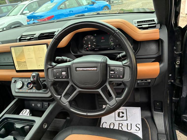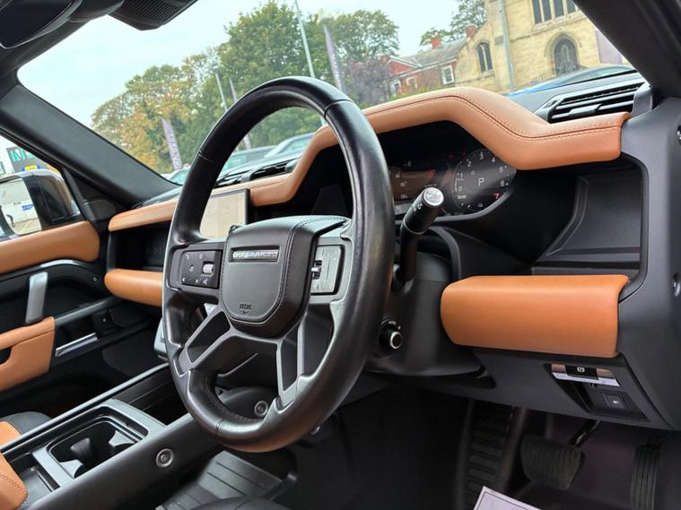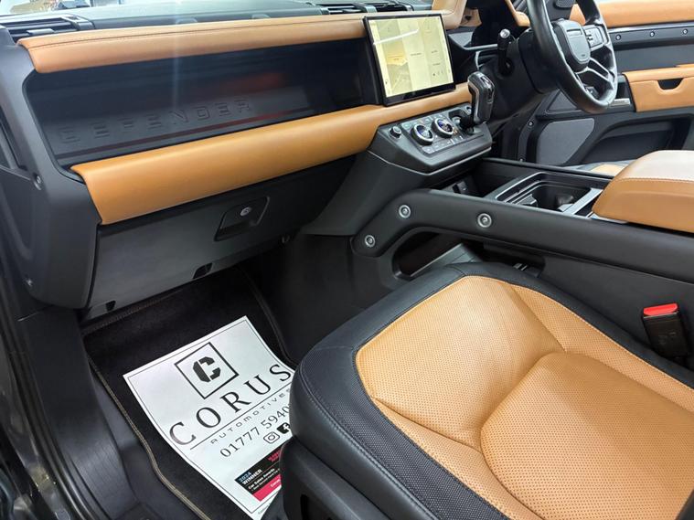 This 2022 Land Rover Defender 110 P400e X Dynamic HSE is a remarkable example, having had only one owner since new. It boasts a powerful 2.0 litre petrol plug in hybrid engine, paired with a sophisticated Four Wheel Drive system, ensuring capability in all conditions. This Euro 6 compliant vehicle offers impressive performance, accelerating from 0 to 60 miles per hour in just 5.4 seconds. The X Dynamic HSE trim level comes equipped with a suite of advanced features, including Adaptive Cruise Control for effortless journeys, and 2 Zone Automatic Climate Control to maintain perfect cabin temperature. Manoeuvring is made simple with a 360 Degree Parking Aid and a 3D Surround Camera system, which also includes a towbar, highlighting its excellent towing weight of 3500 kg.The Defender 110 P400e X Dynamic HSE stands out with its intelligent technology and practical design. The Matrix LED Headlights with Signature Daytime Running Lights provide excellent visibility, while the generous boot space offers ample room for all your needs. These features, combined with its plug in hybrid powertrain and exceptional acceleration, demonstrate how this Defender offers a superior driving experience compared to other vehicles in its class, blending efficiency with robust performance and advanced driver assistance systems..